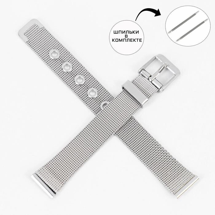 Ремешок для часов, 14 мм, длина 20 см, нержавеющая сталь, шпильки в комплекте