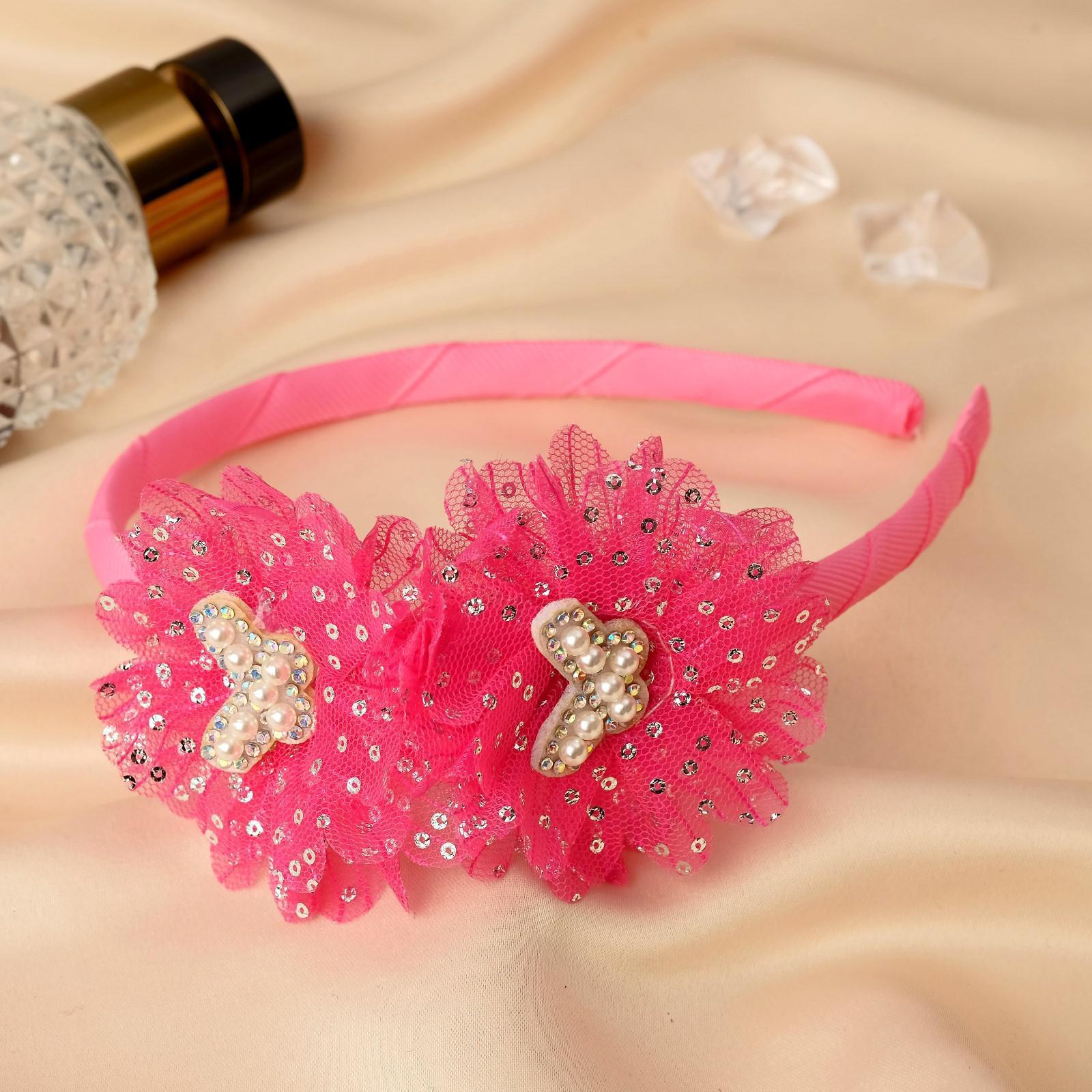 Ободок для волос "Алёнка" 0,5 см, бабочки, розовый