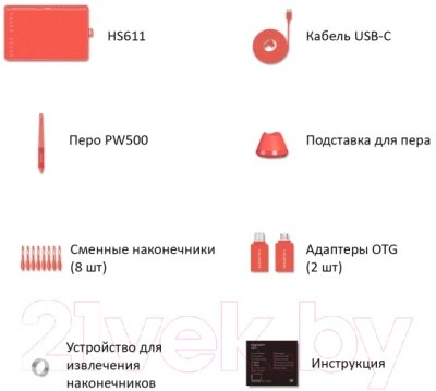 • Комплектация адаптер, перо, документация, кабель USB, набор наконечников, подставка для пера
