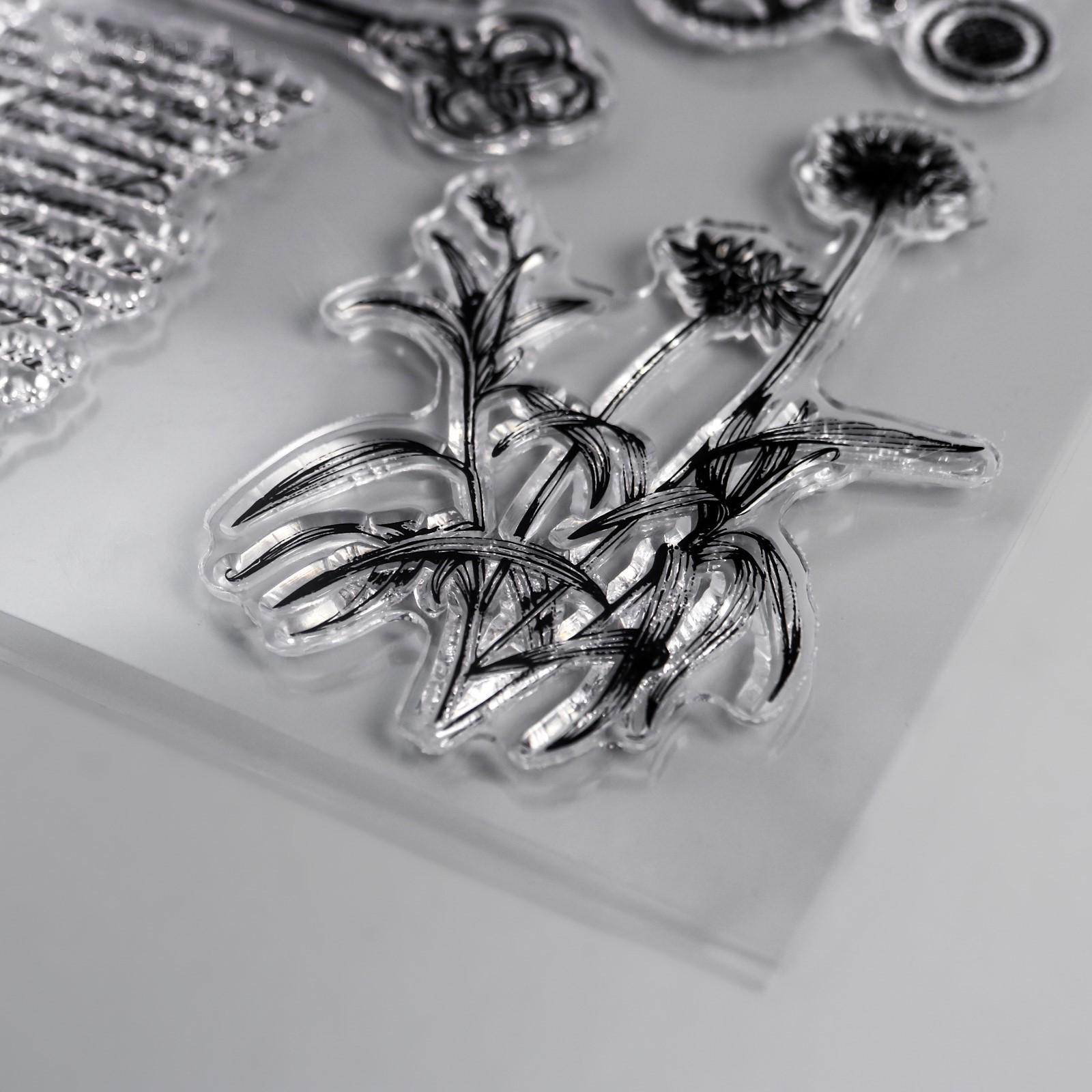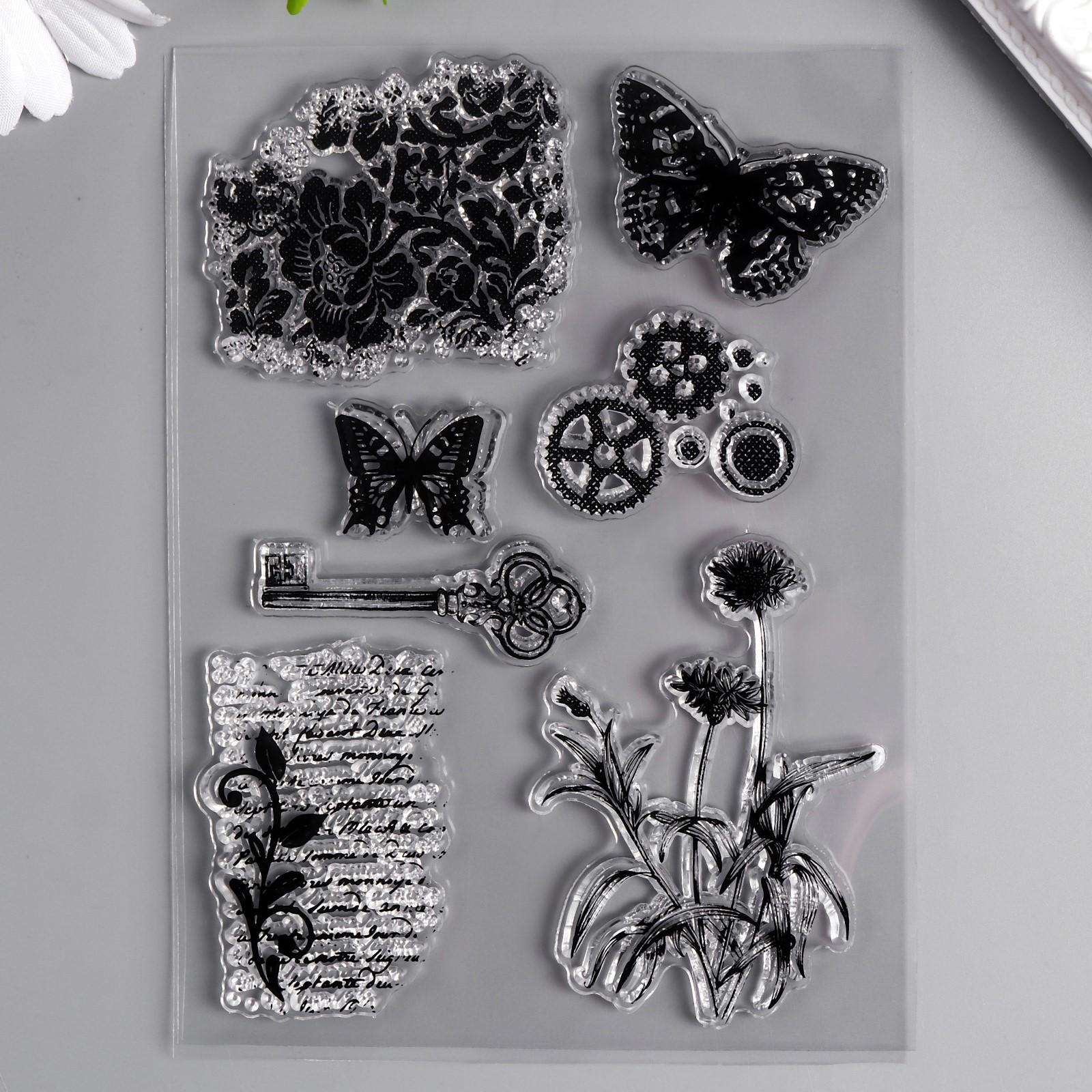 Штамп для творчества силикон "Бабочки, цветы и ключ" 15х10 см