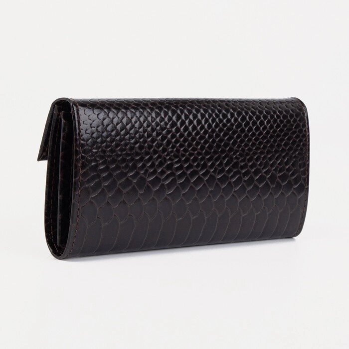 Кошелёк женский, 2 отдела на клапане, цвет тёмно-коричневый