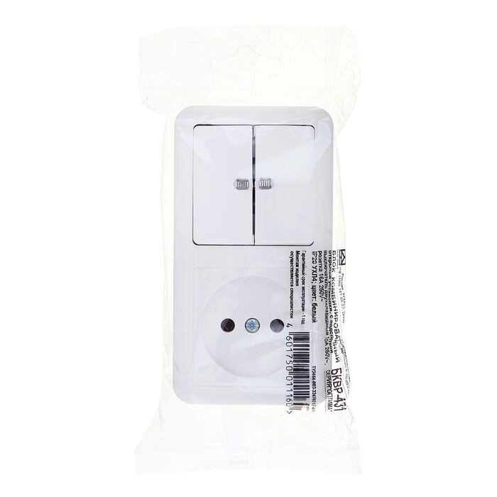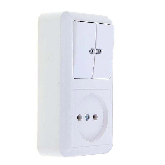 Блок комбинированный "Кунцево" Оптима 8063, 2 клавиши, с розеткой, белый