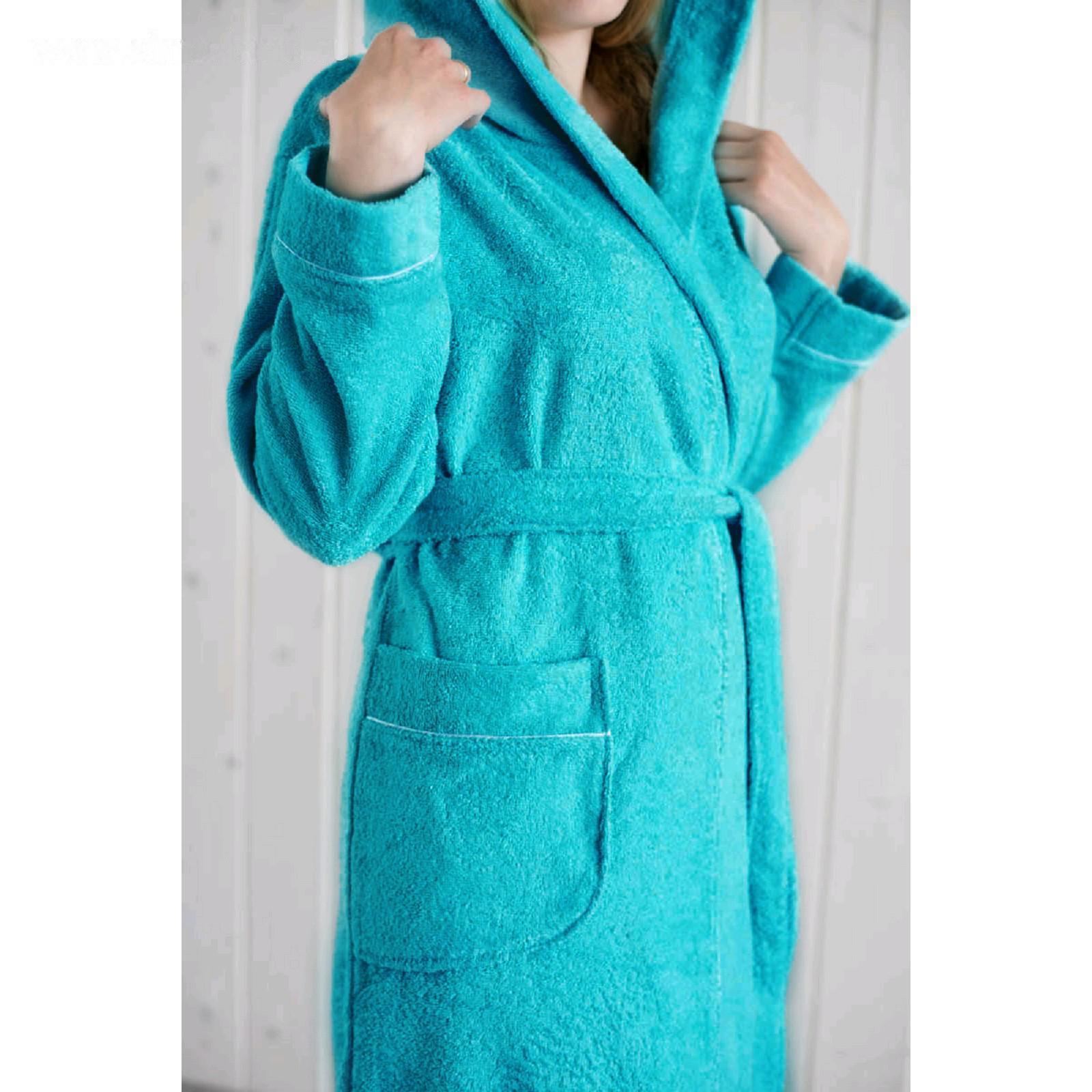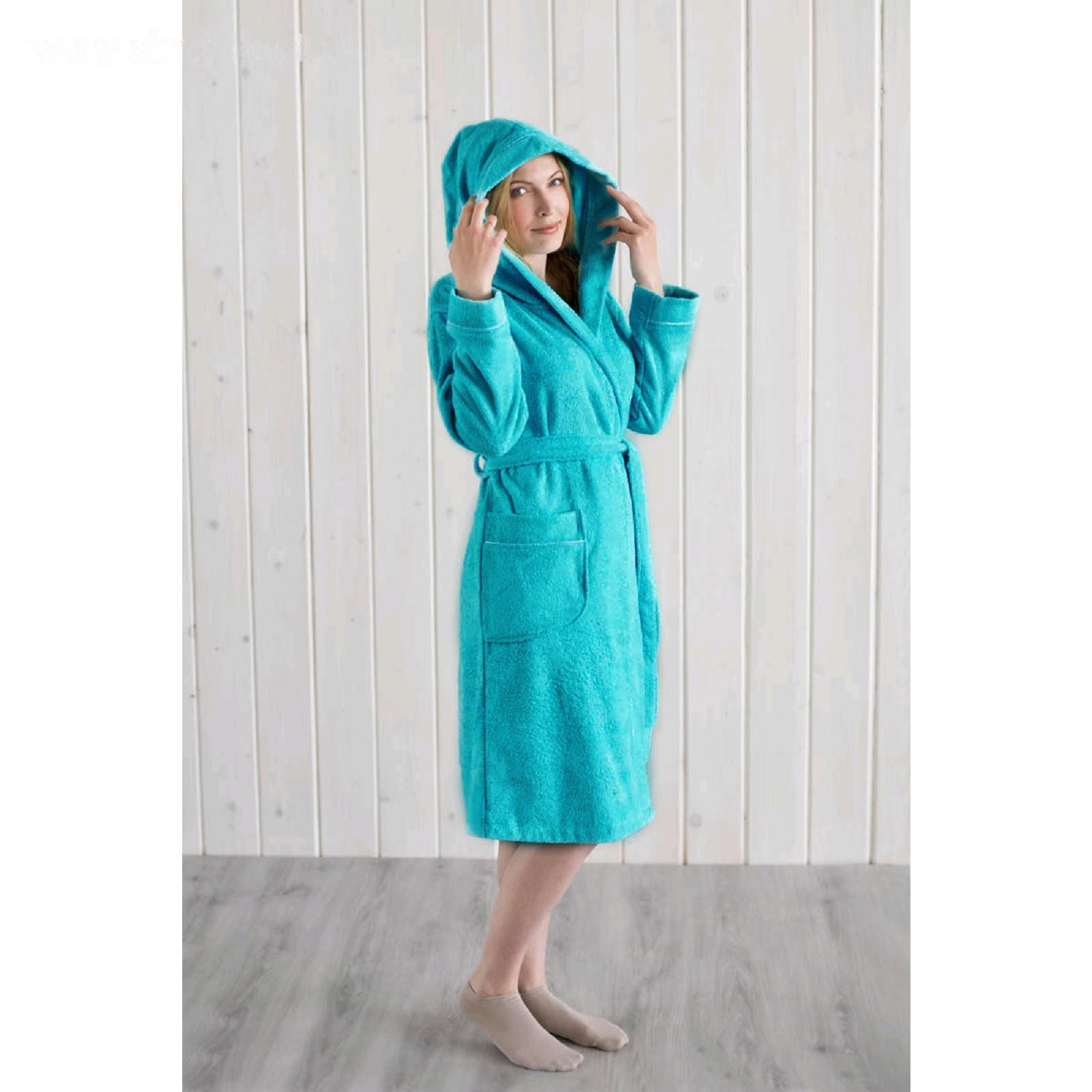 Халат женский с капюшоном, размер 44, бирюза, махра