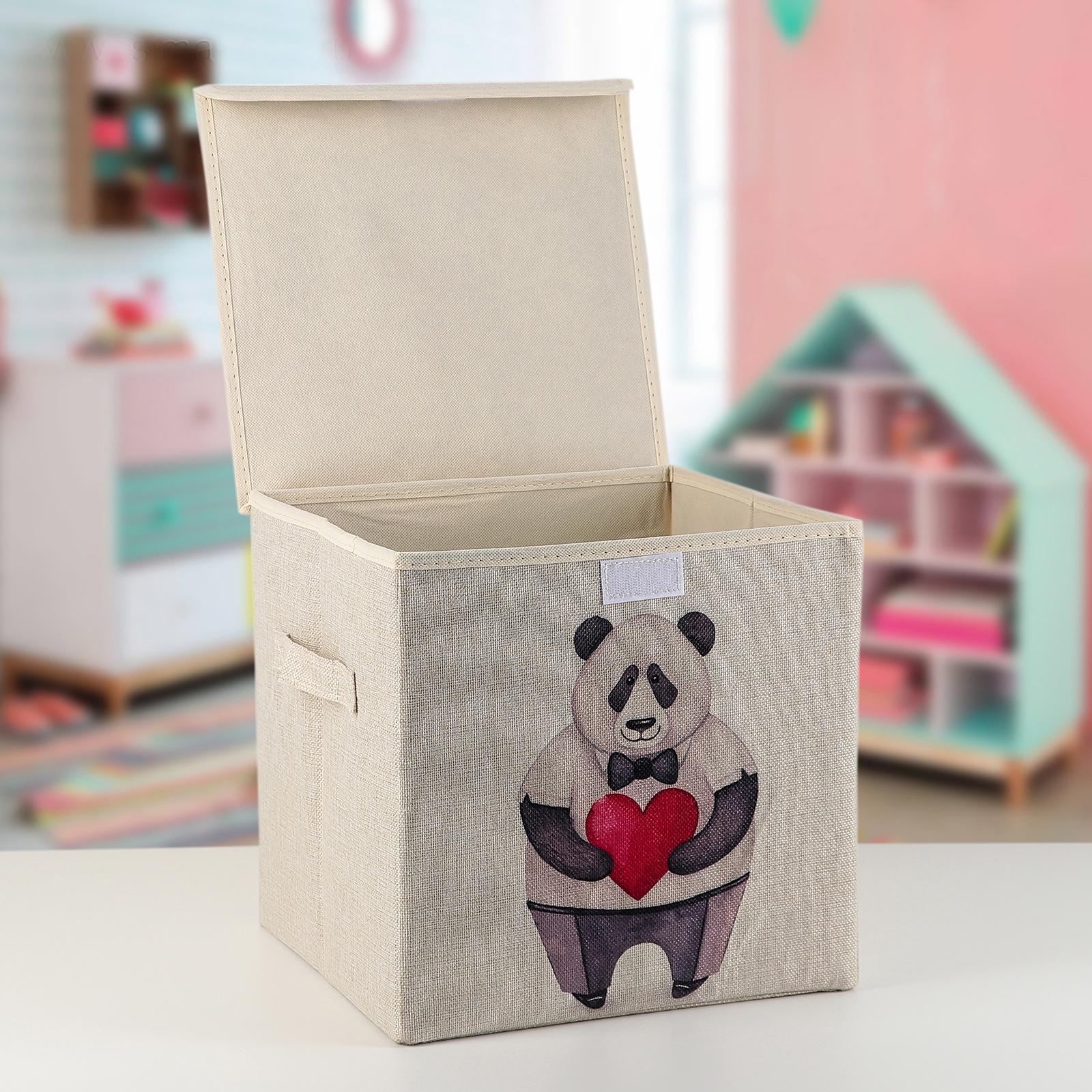 Короб стеллажный для хранения с крышкой «Влюблённая панда», 30×30×28,5 см