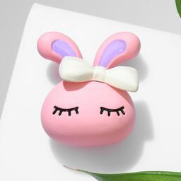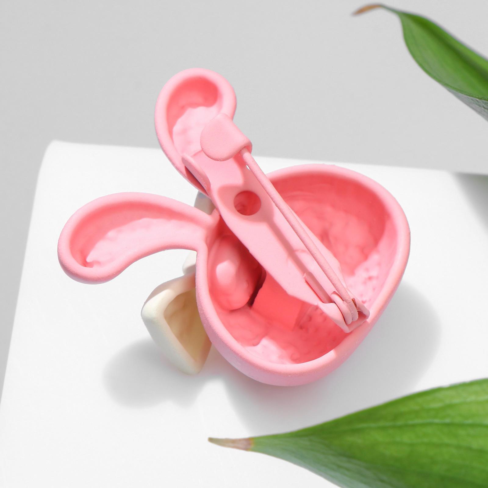Брошь "Зайчик" спящий с бантиком, цвет бело-розовый