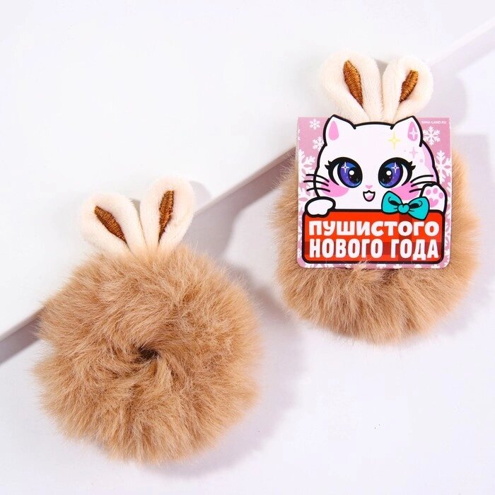 Резинка пушистая с ушками кролика "Пушистого Нового года!9 х 6 см