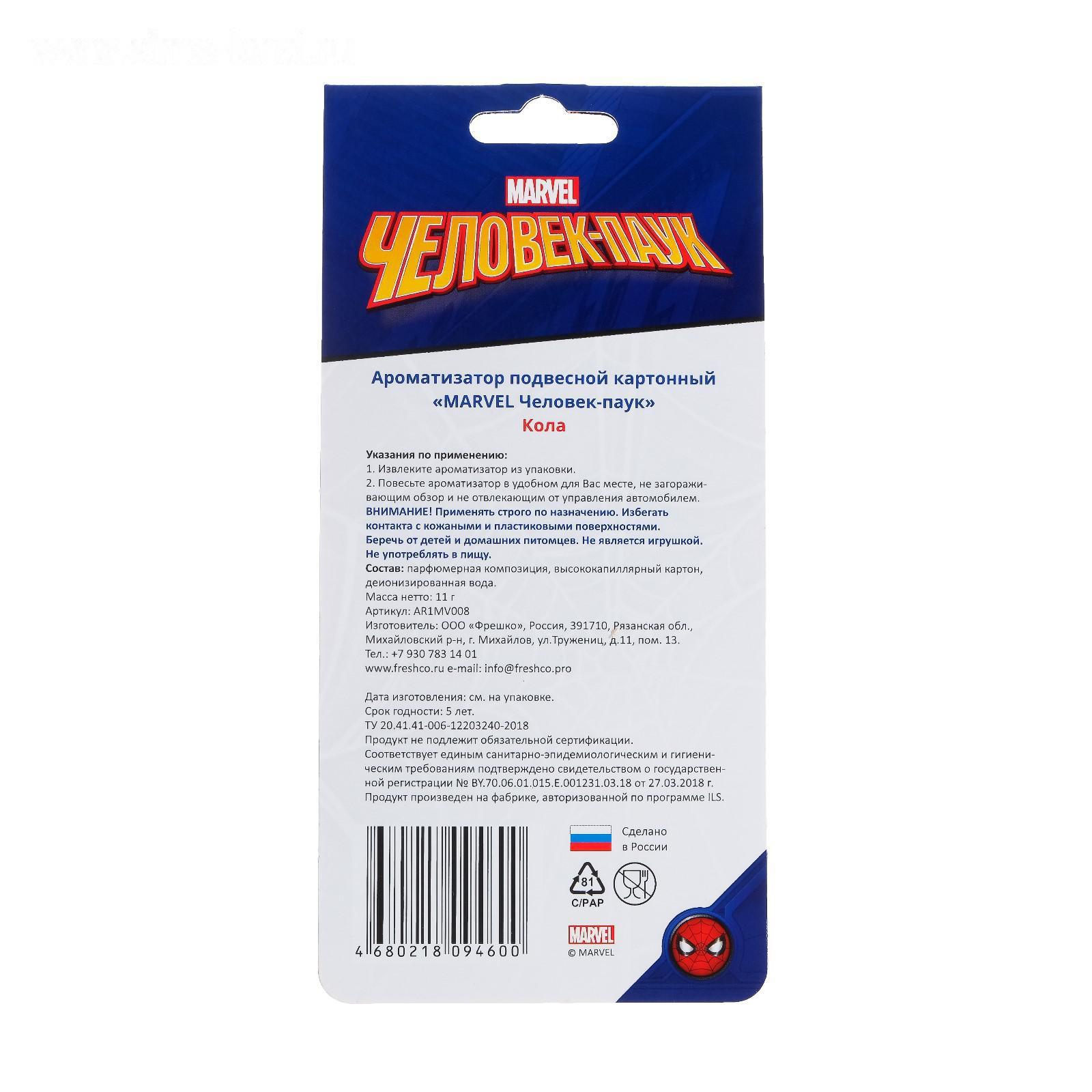 Ароматизатор подвесной Marvel Человек-паук, Кола