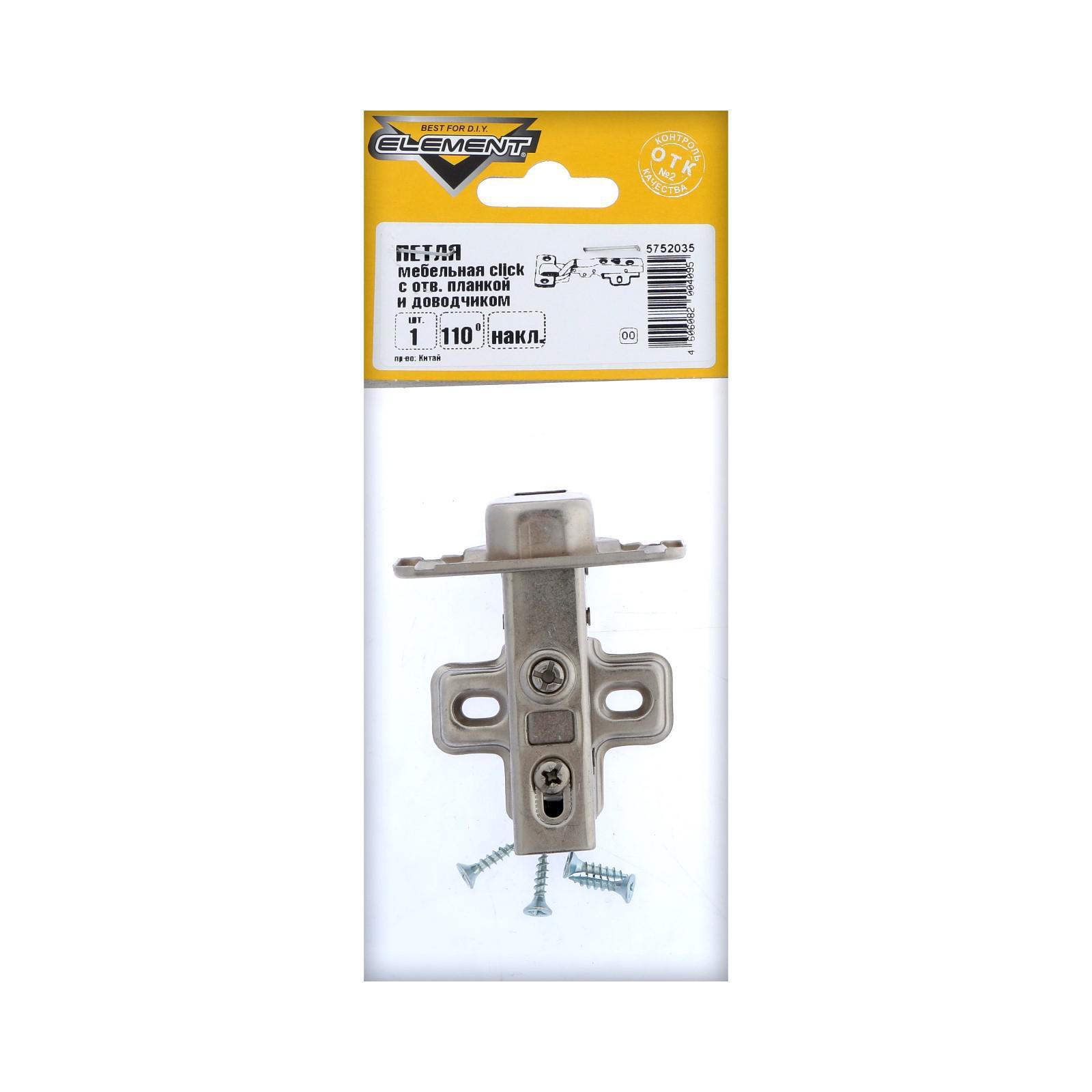 Петля меб. click накл.с доводч.110* с ответной планкой, цвет белый цинк, 1 шт.