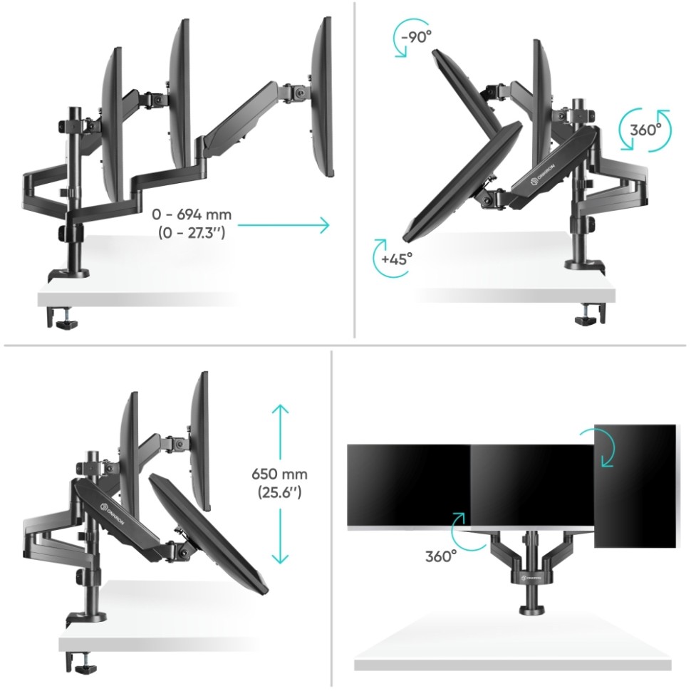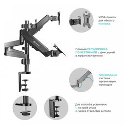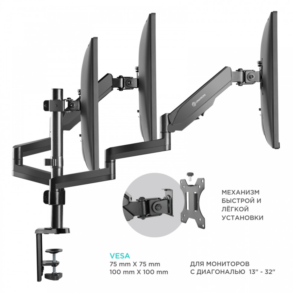 Настольный кронштейн-газлифт для трёх мониторов 13"-32" Onkron чёрный (G280)