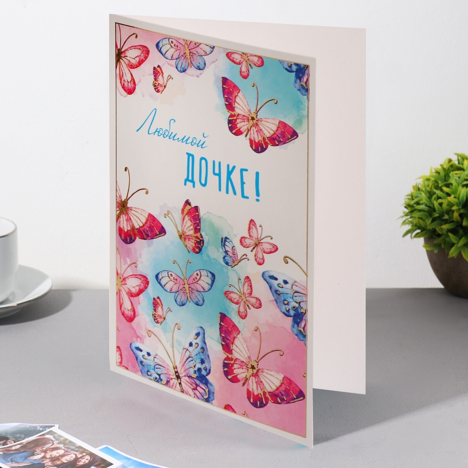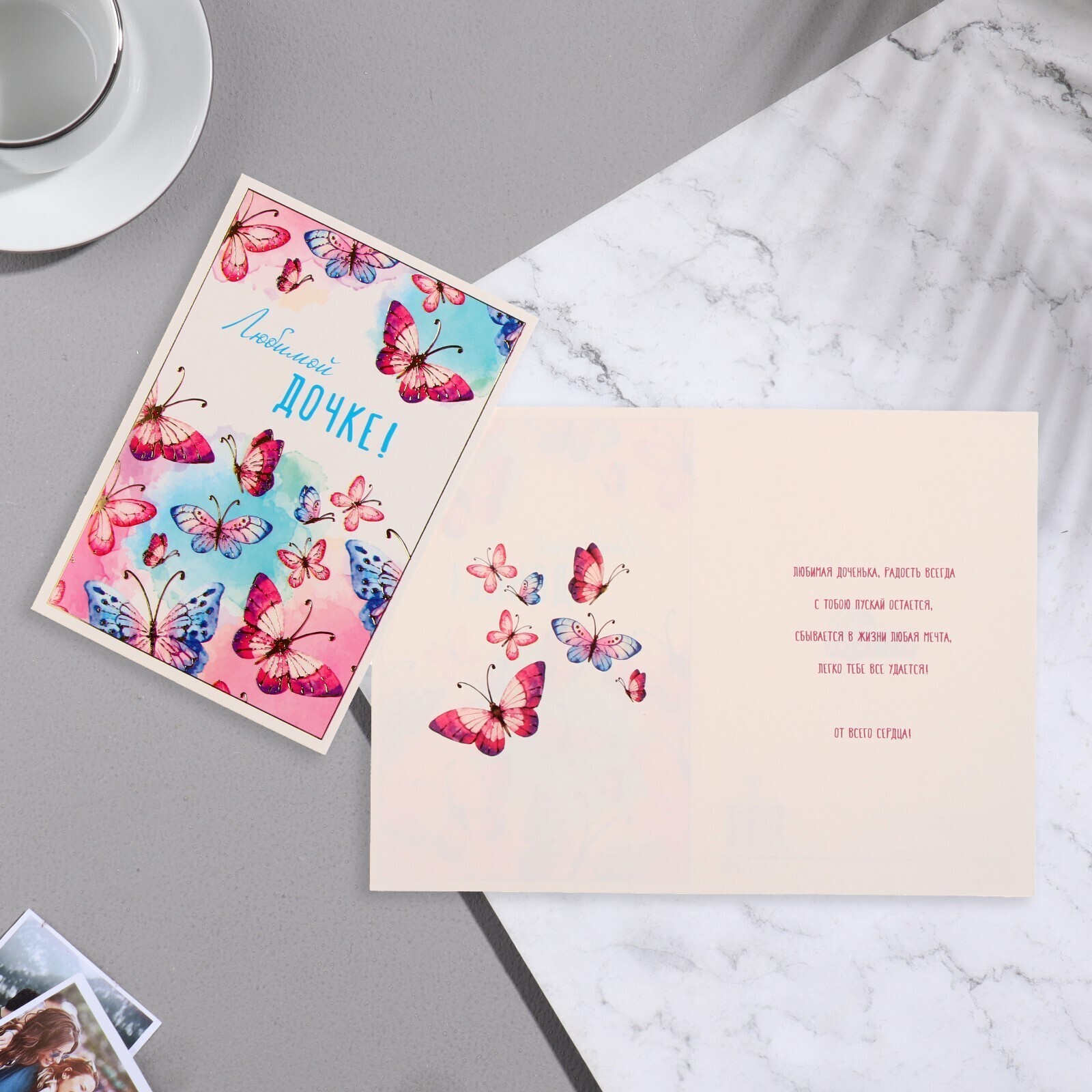 Открытка "Любимой дочке!" бабочки, 13 х 18 см