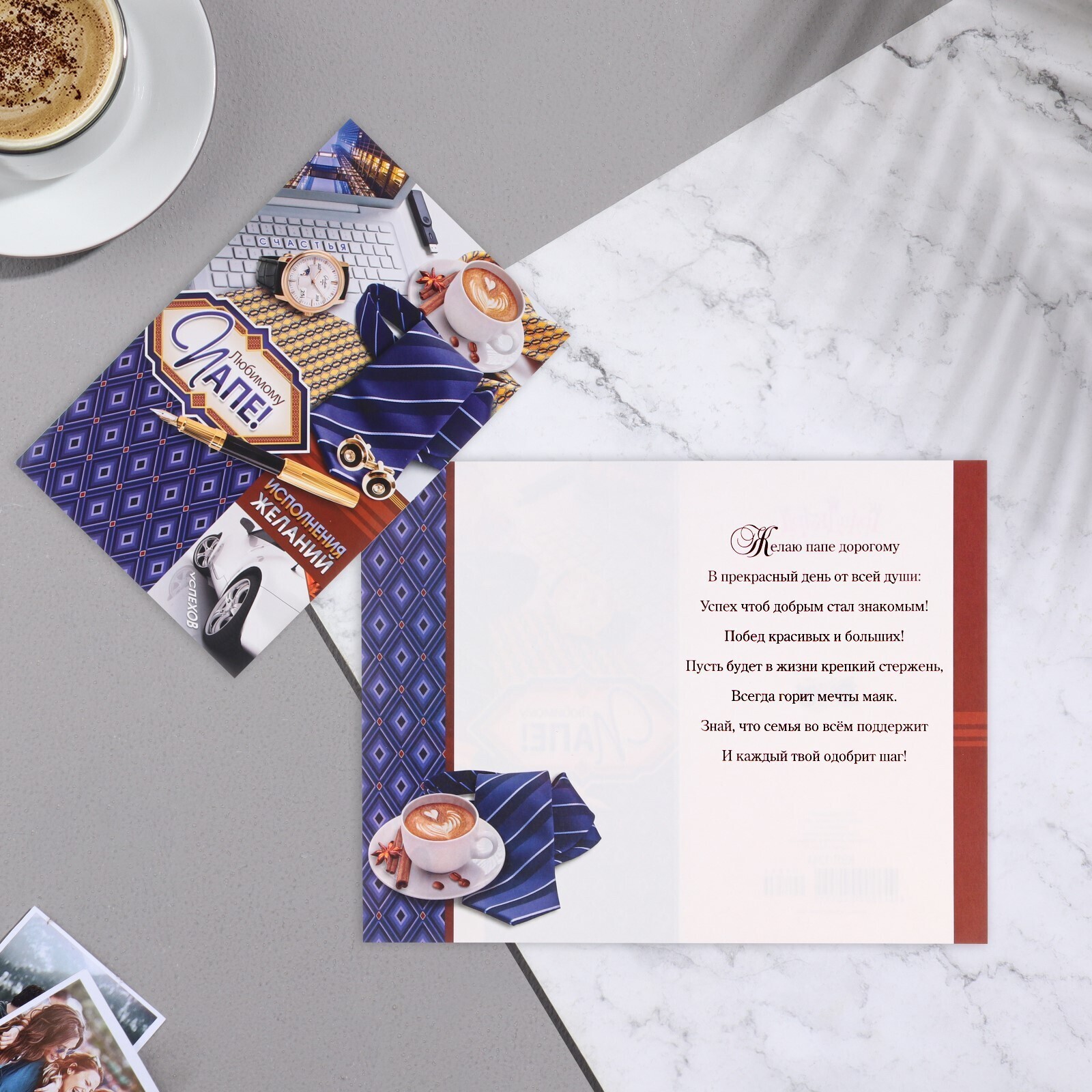 Открытка "Любимому папе!" галстук, машина,