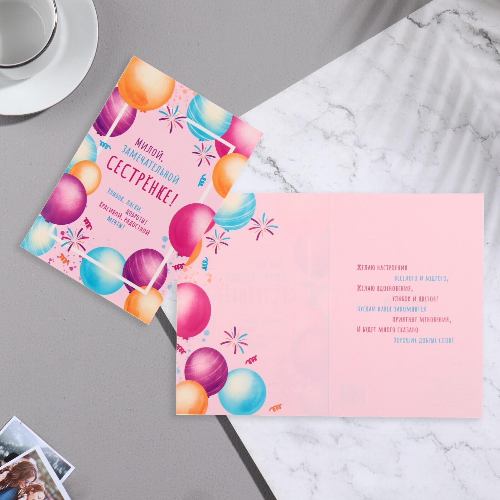 Открытка "Милой сестренке" шары, 13 х 18 см