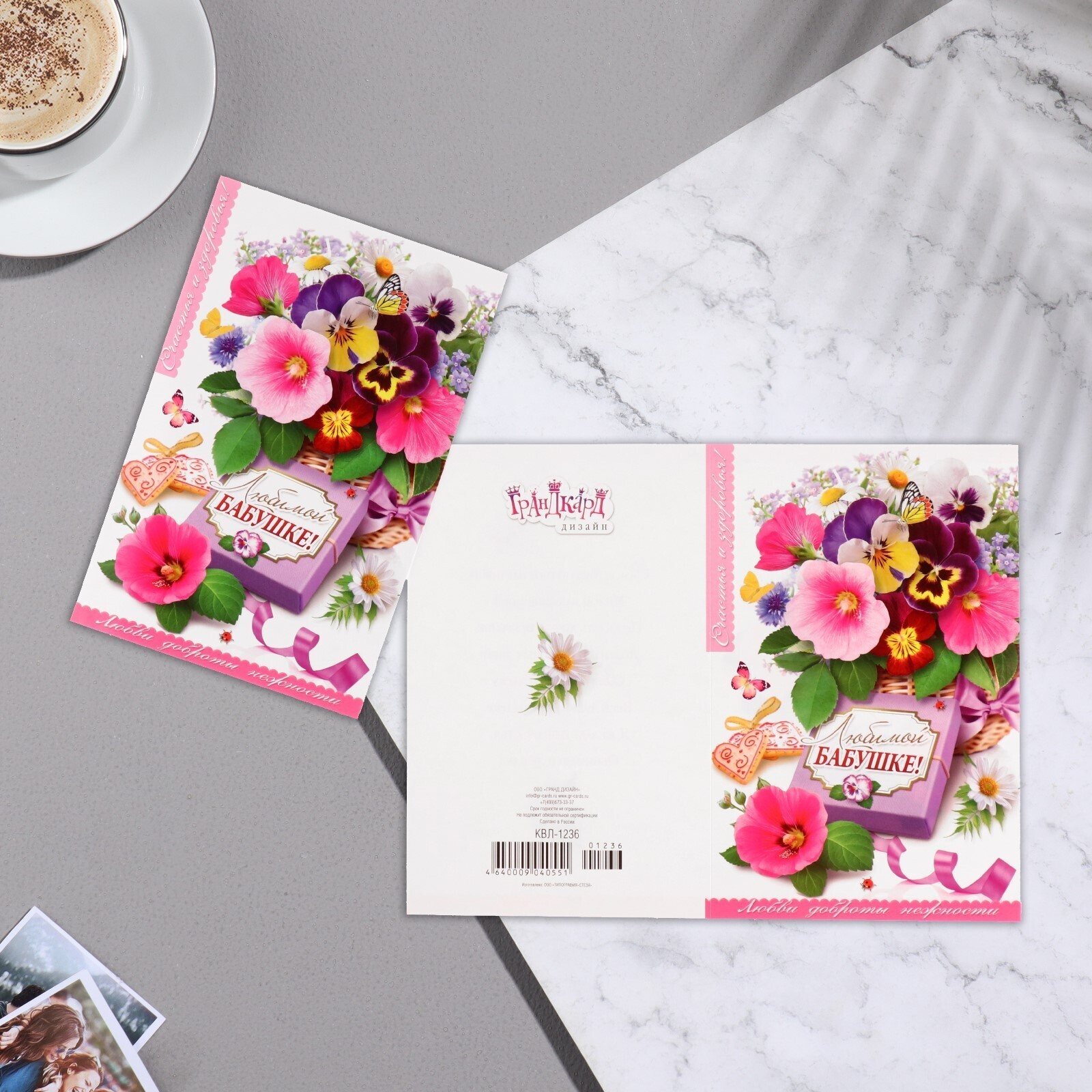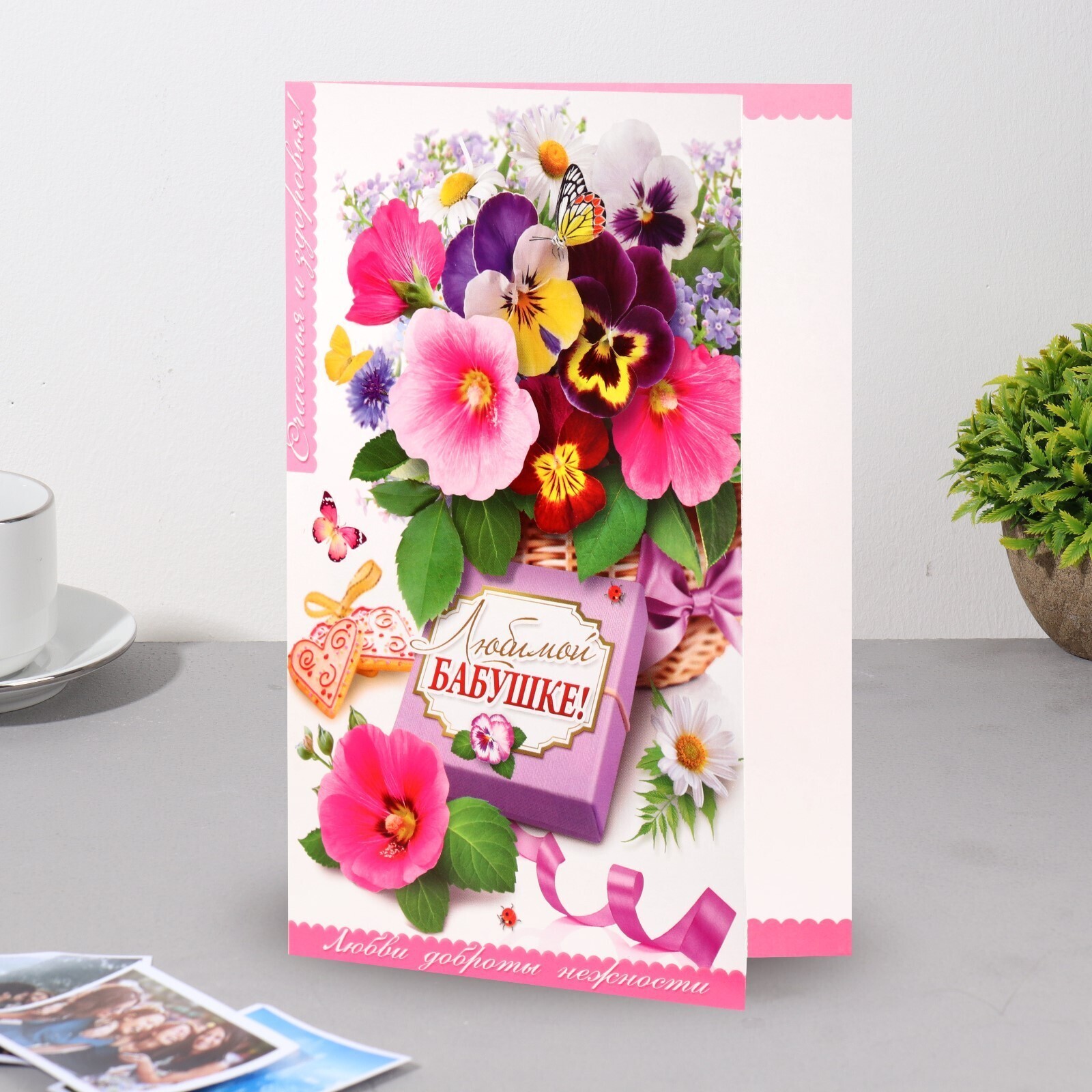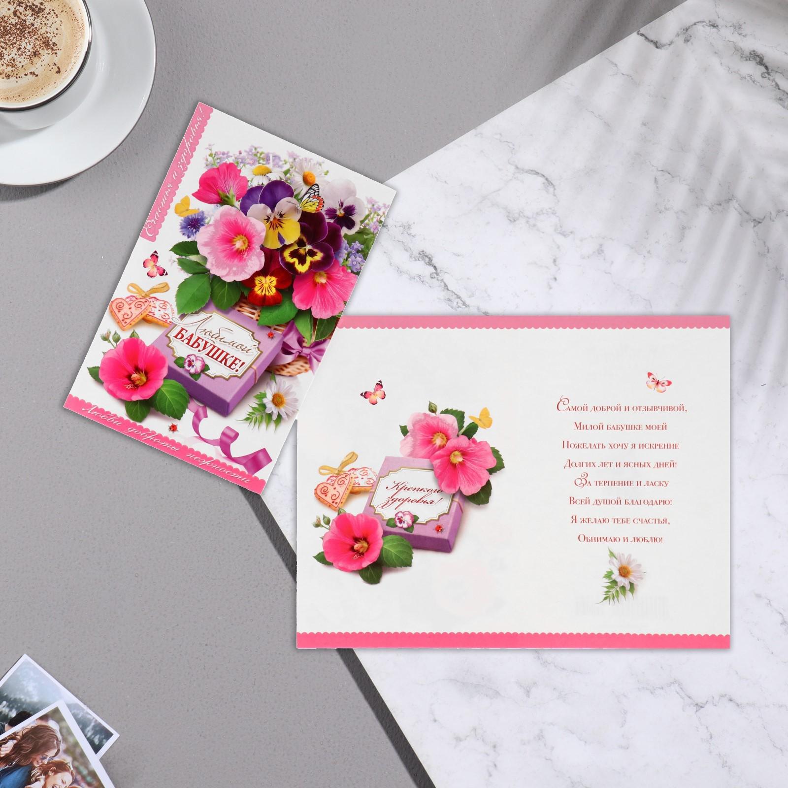 Открытка "Любимой бабушке!" корзинка фиалок, А5
