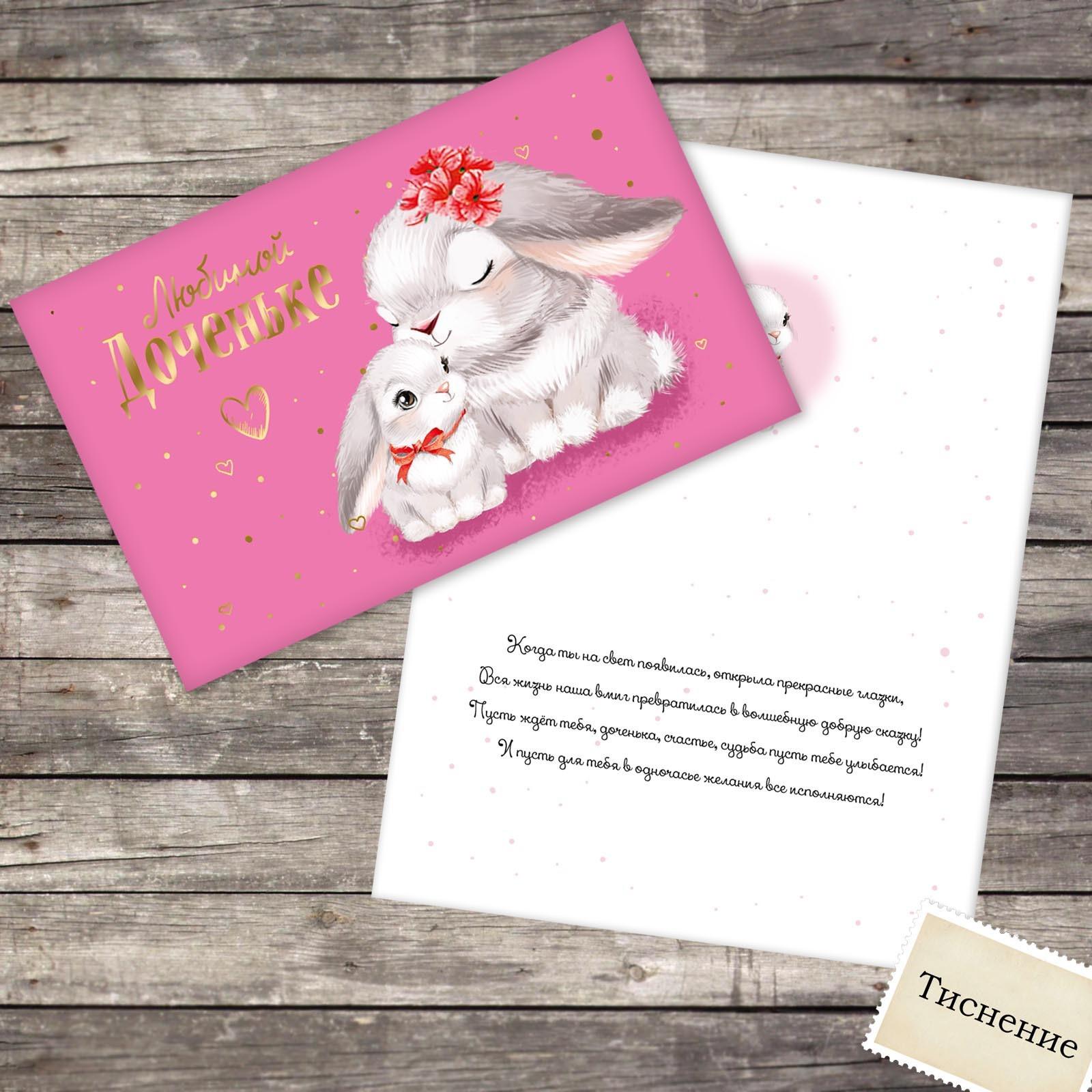 Открытка «Любимой доченьке», зайки, 12 × 18 см, тиснение,
