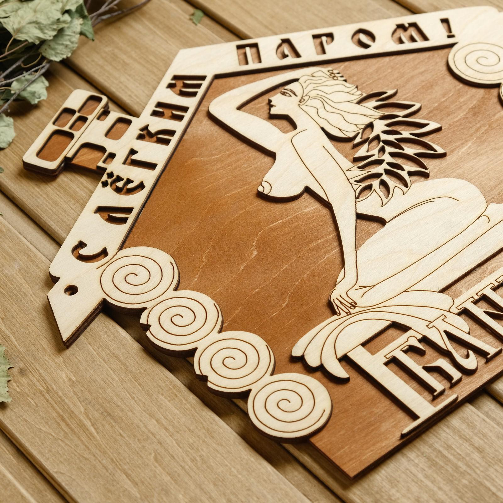 Табличка для бани 35×30 см "С лёгким паром! Девушка, банька"