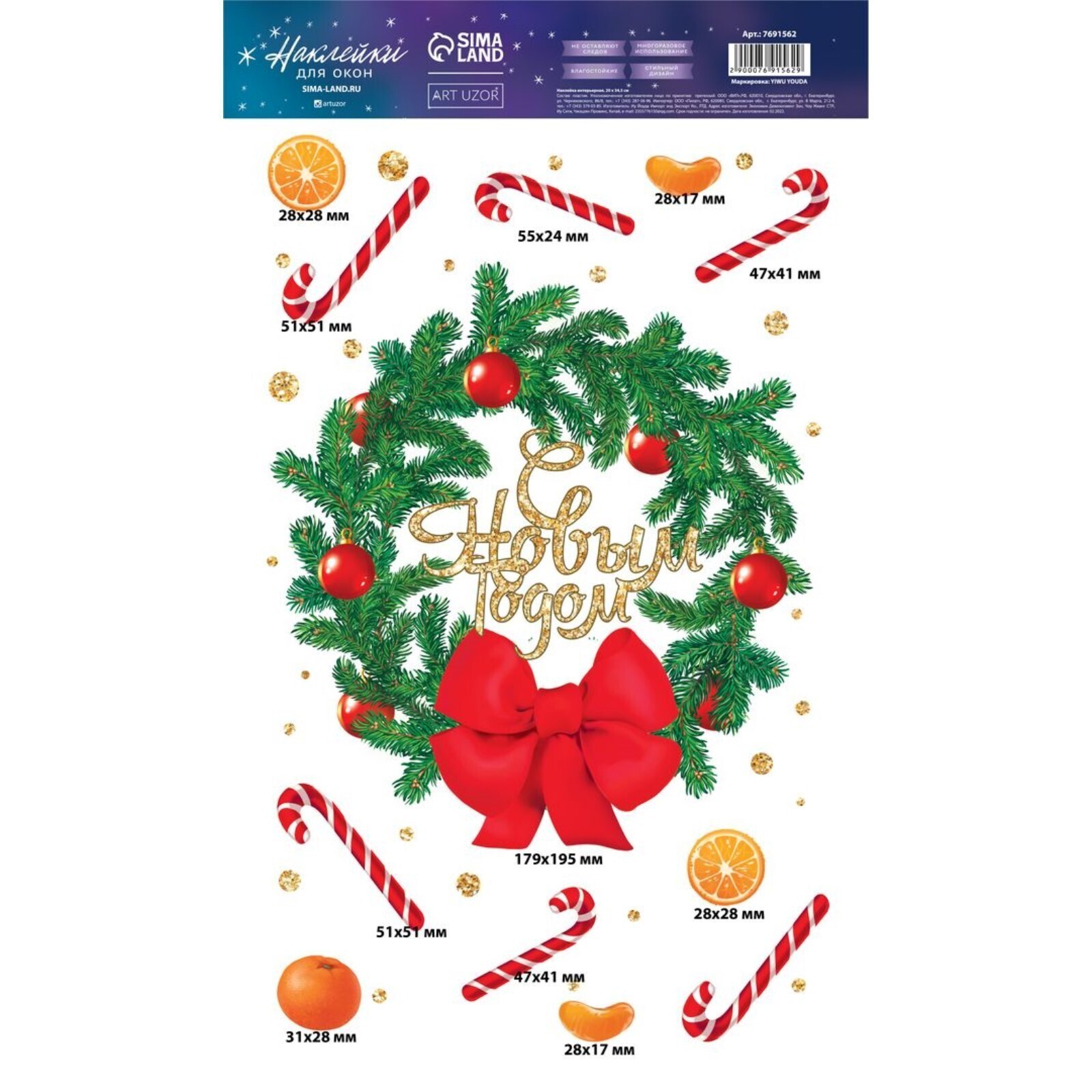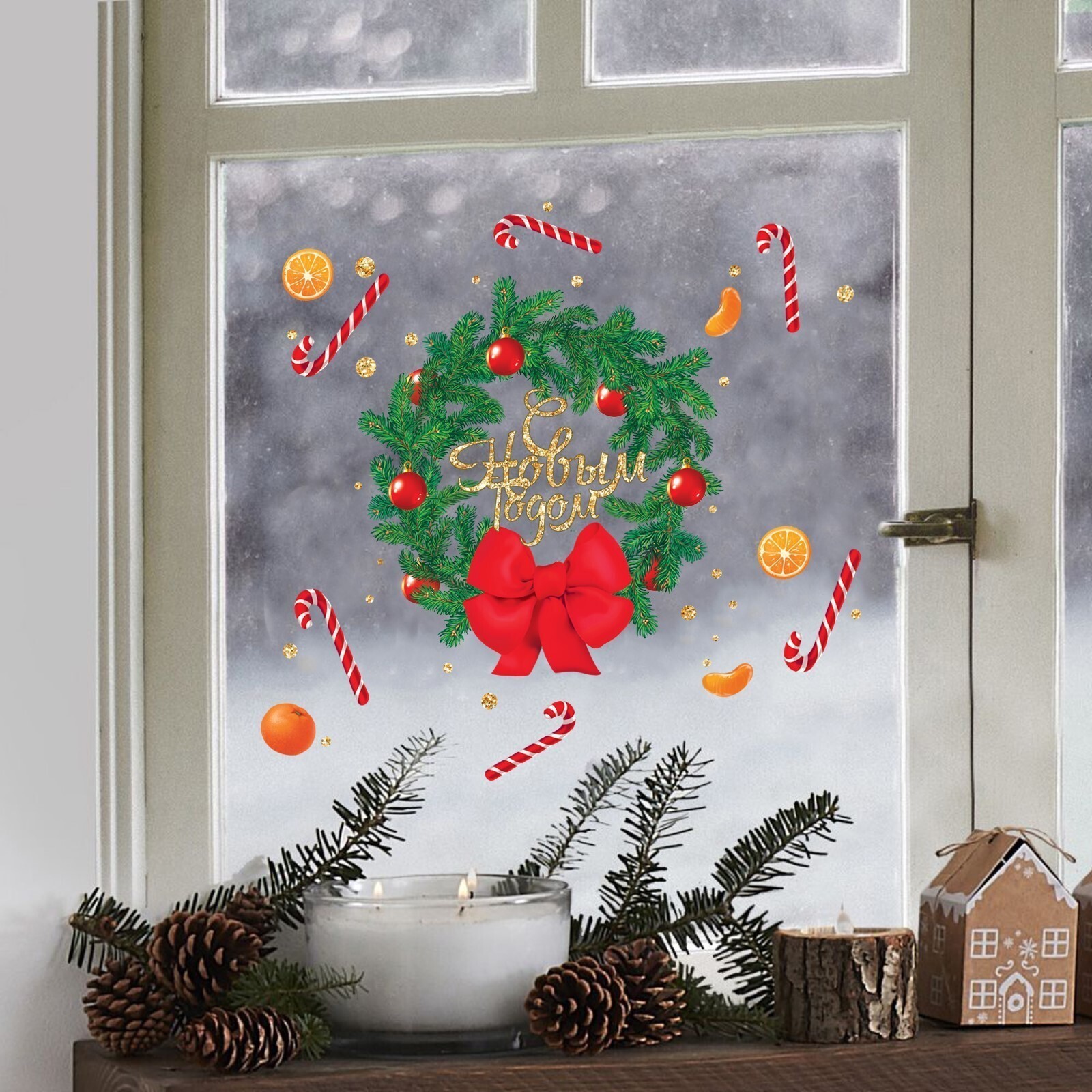 Виниловая наклейка на окно «С Новым годом», многоразовая, 20 × 34,5 см
