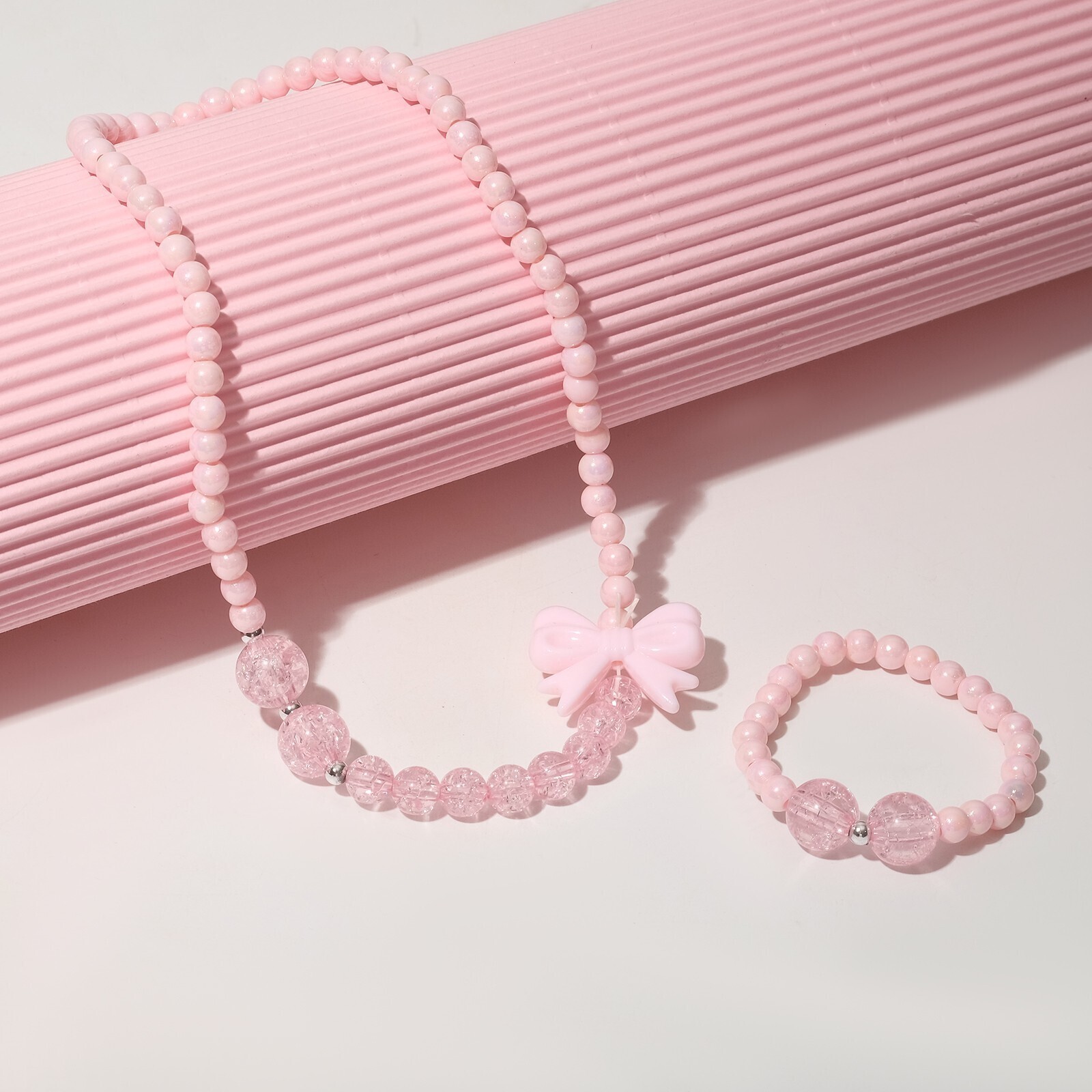 Набор детский "Выбражулька" 2 предмета: бусы, браслет, бантик, цвет розовый