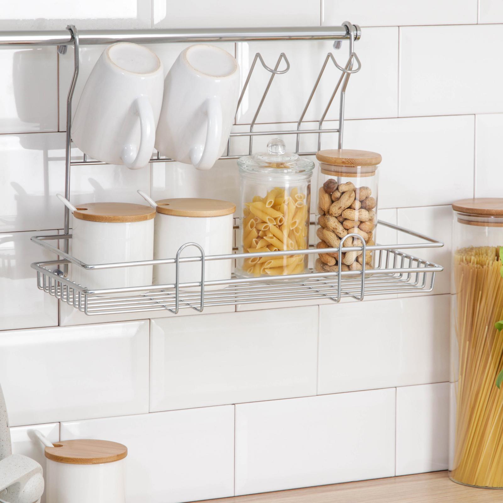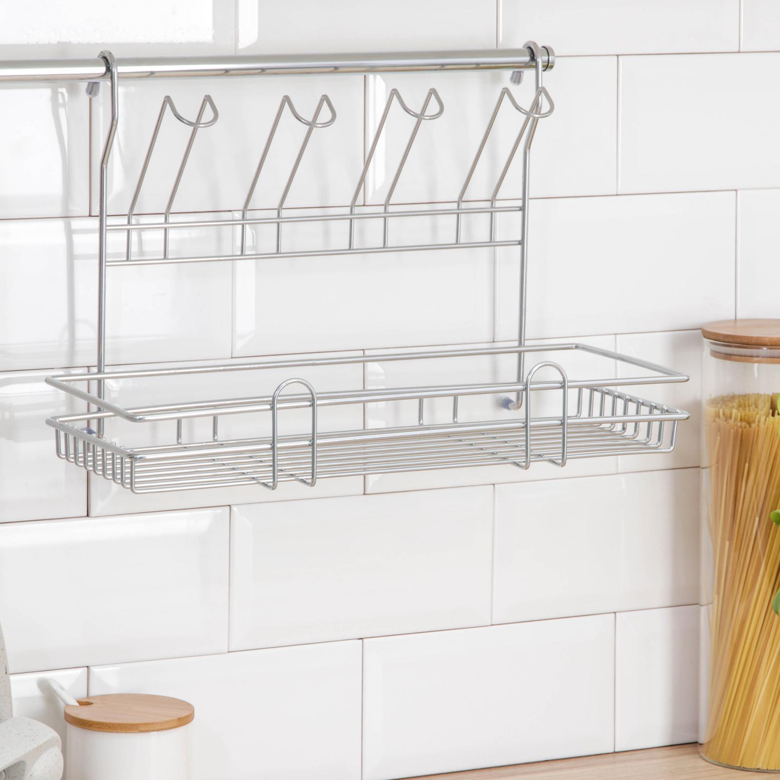 Полка для рейлинга комбинированная со стаканодержателем, 39,5×15×27 см, d=16 мм, цвет хром