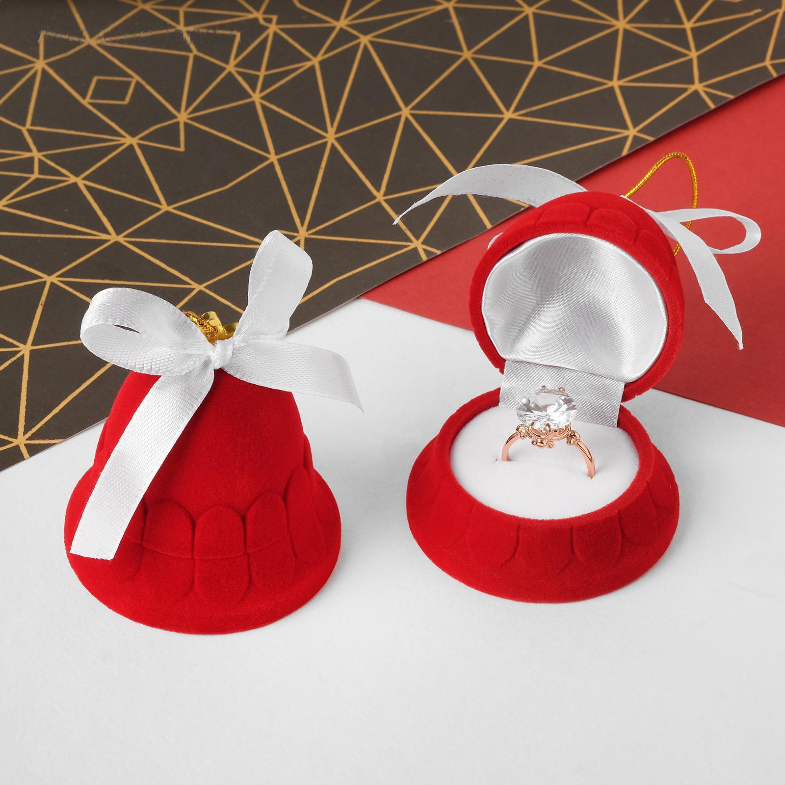 Футляр бархатный под серьги/кольцо "Колокольчик" 6*6*6,7см, цвет красный