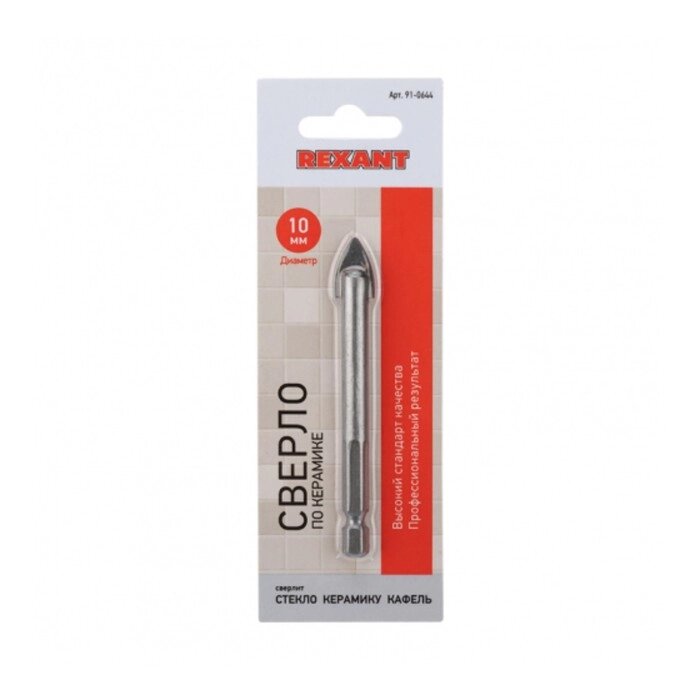 Сверло по стеклу и керамике REXANT, шестигранный хвостовик, d=10 мм
