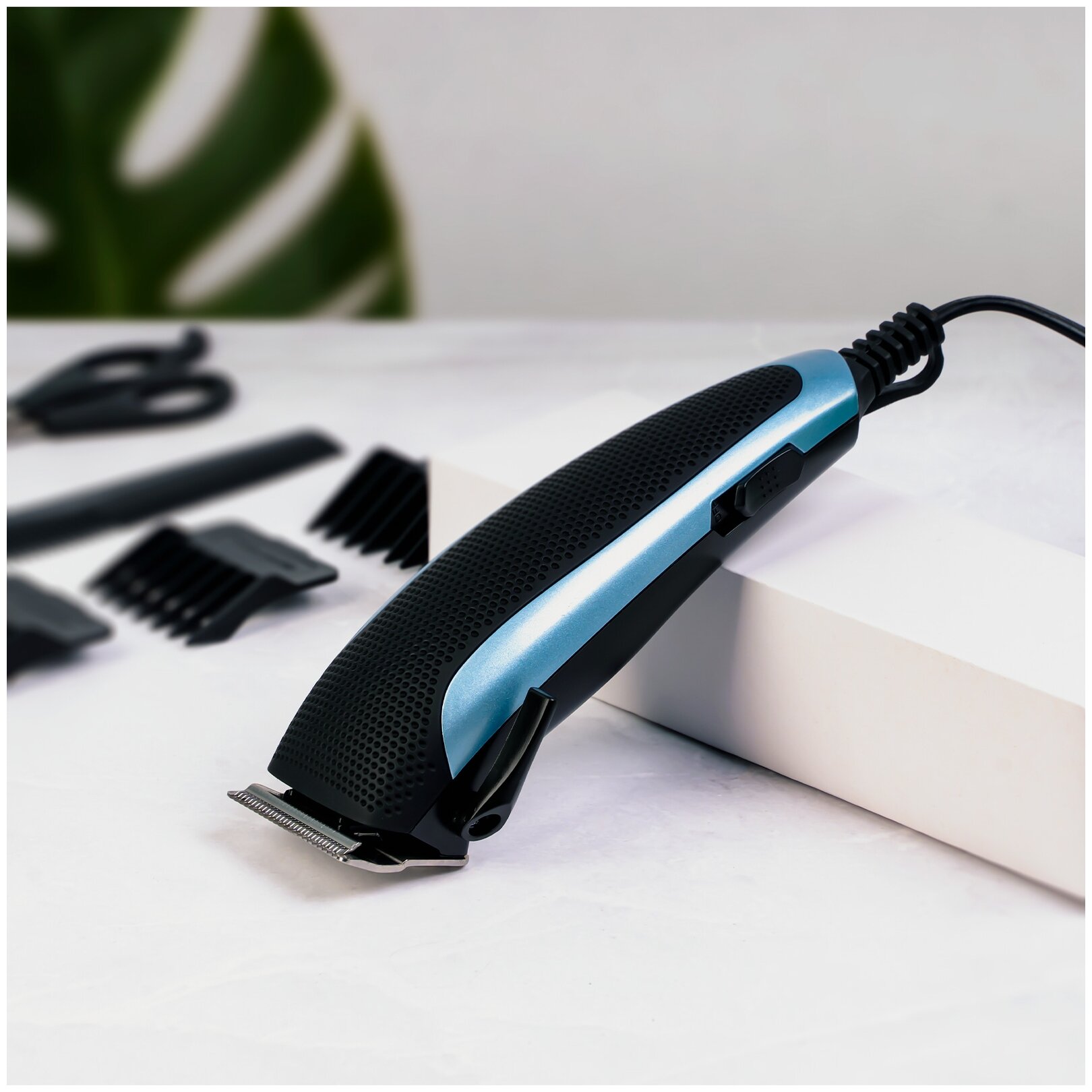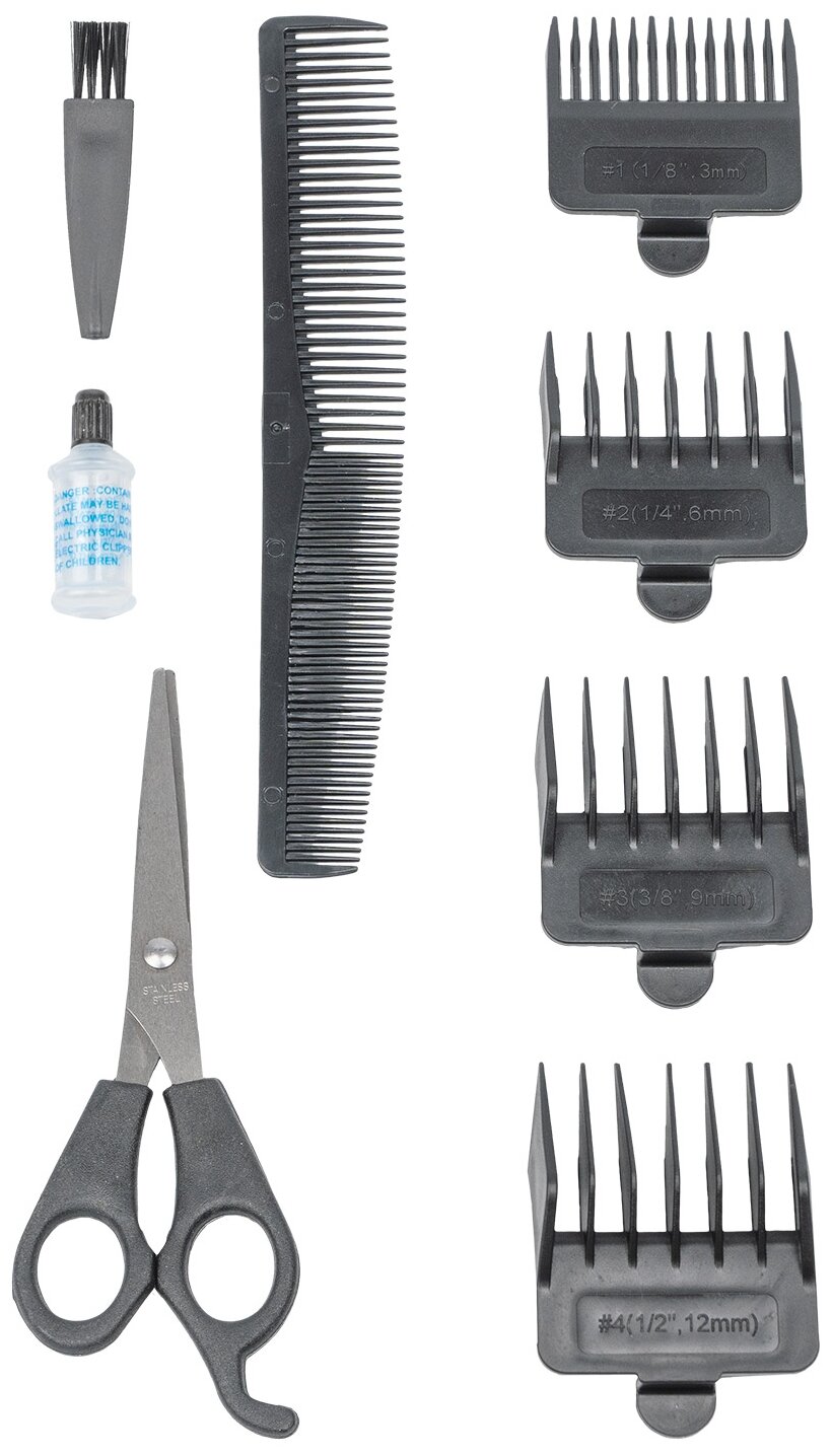 Набор для стрижки GALAXY LINE GL4107 поможет сделать как простую, так и индивидуальную стрижку в домашних условиях. Лезвия из высококачественной нержавеющей стали обеспечивают плавность хода и гарантируют превосходное качество стрижки. Ширина лезвия в данной модели 45 мм. Благодаря 4 насадкам-расческам, поставляемым в комплекте, можно создать стрижку длиной 3, 6, 9, 12 мм. На боковой стороне корпуса расположен выключатель и рычаг регулировки длины лезвия. Минимальная длина стрижки без использования насадок – расчесок составляет 1 мм, максимальная длина с использованием рычага регулировки длины лезвия – 2 мм. Набор для стрижки имеет в комплекте все необходимые принадлежности: щетка для чистки, масло для смазки, расческа, ножницы, защитный колпачок. Длина шнура питания 160 см обеспечивает комфортную работу, а наличие подвесной петли – компактное хранение прибора.