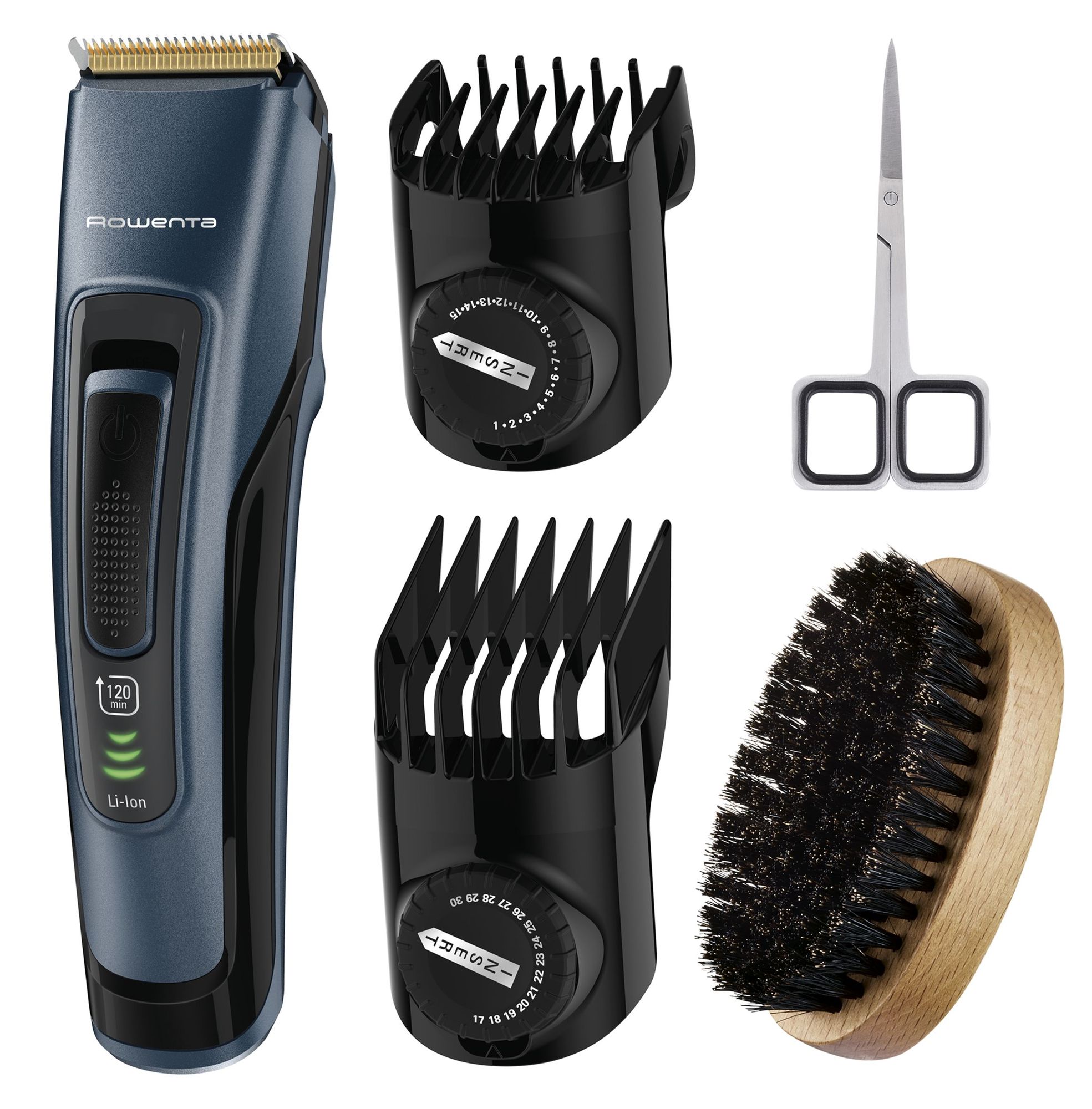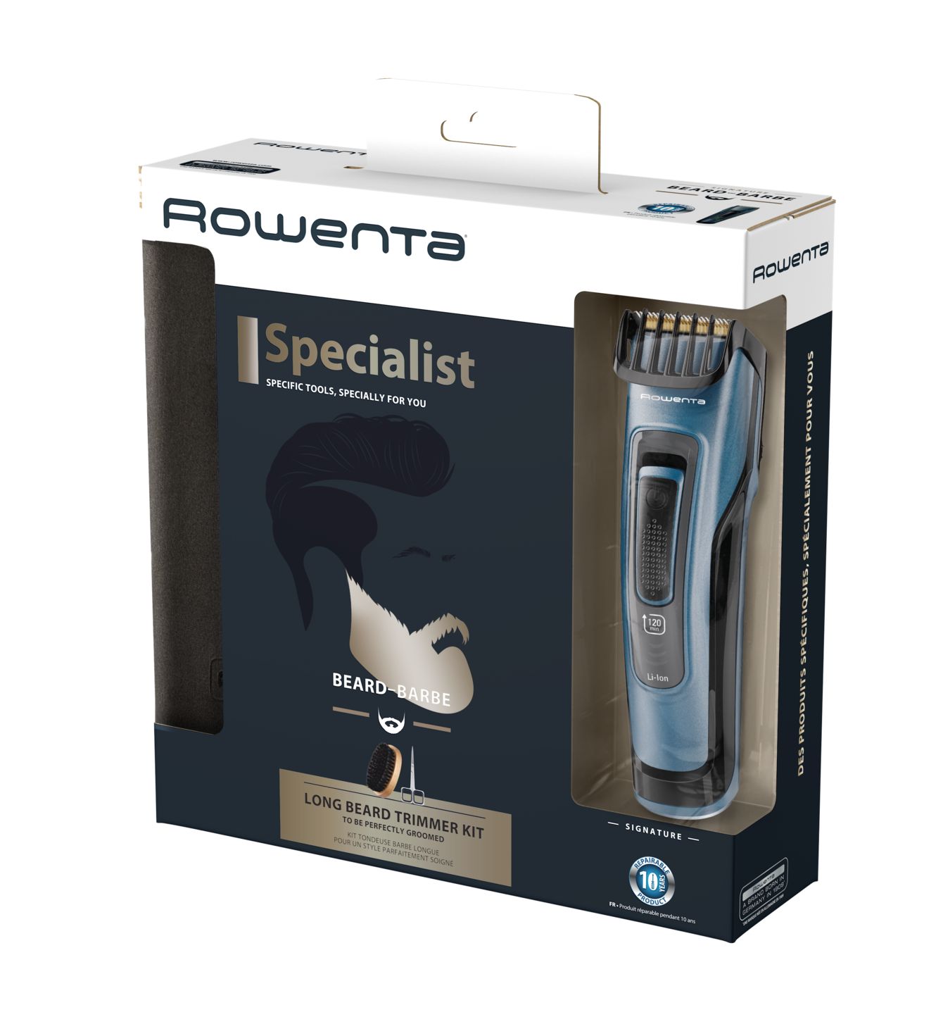 Триммер для бороды Rowenta Signature TN4500F4 С эксклюзивным триммером для длинной бороды Rowenta Signature ваша борода будет всегда в наилучшем виде. Конструкция триммера адаптирована специально под длинную густую бороду, благодаря чему вы гарантированно получите идеальное срезание и наилучшие результаты стрижки. Более того, титановое покрытие и самозатачивающиеся лезвия обеспечивают высочайшее качество стрижки надолго. Благодаря двум регулируемым насадкам с 44 настройками длины вы сможете стричь бороду любой длины. В комплекте идут обязательные аксессуары для ухода за бородой: щетка из 100% щетины кабана и ножницы для усов из нержавеющей стали премиального класса