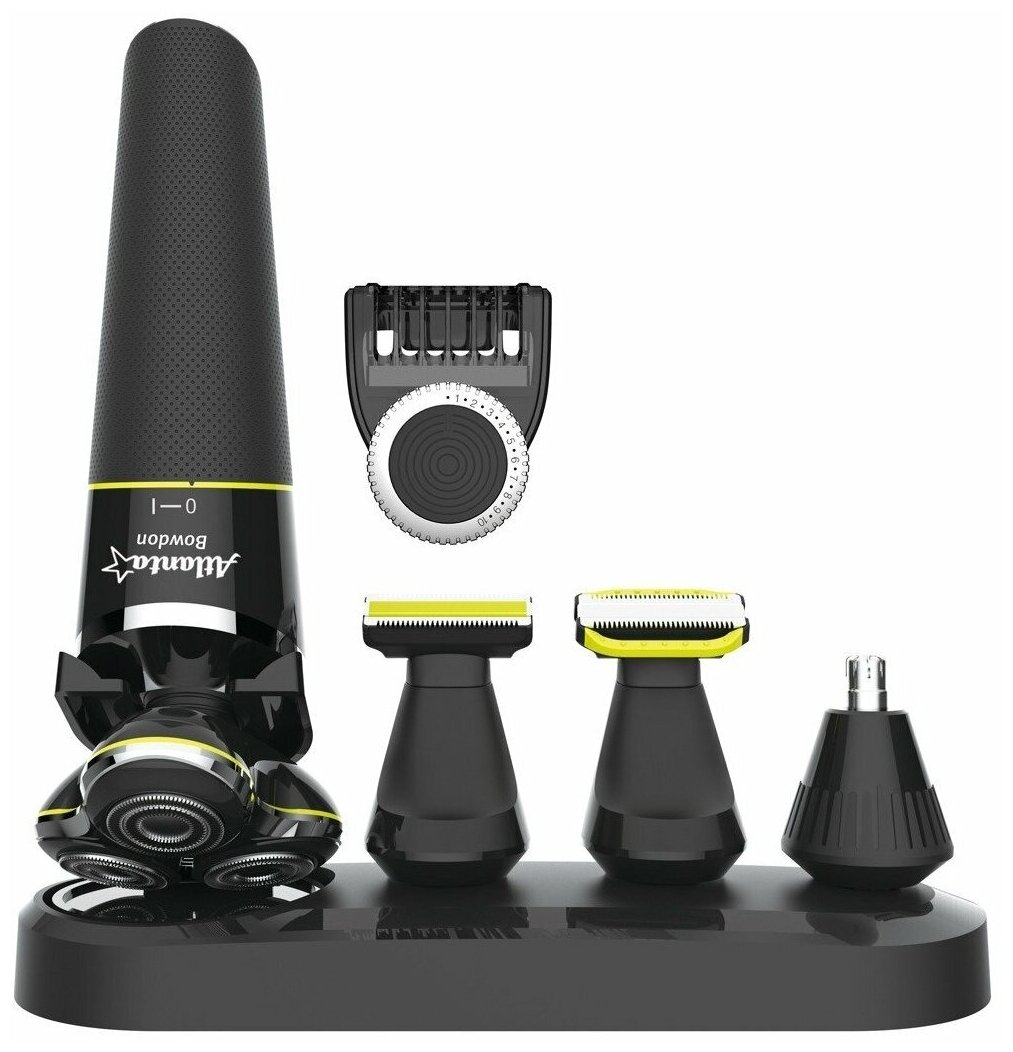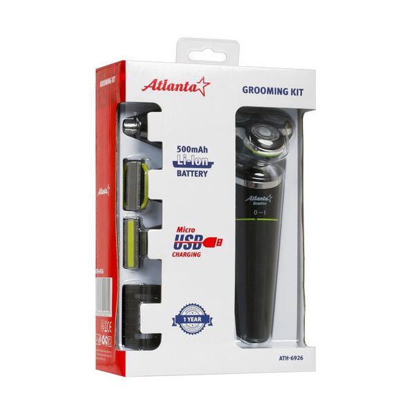 Электробритва Atlanta ATH-6926 – многофункциональное устройство, которое станет надежным помощником для мужчины. В наборе поставляются 5 сменных насадок для ухода за разными участками тела – бритвенная, для носа и ушей, для бороды и усов, для стрижки волос с регулировкой длины, а также триммер. Бритвенная насадка с тремя плавающими головками эффективно устраняет волоски разной длины и не раздражает чувствительную кожу. Встроенный аккумулятор гарантирует в пределах 60 минут автономной работы Atlanta ATH-6926. Для удобного хранения насадок и бритвы в комплекте предусмотрена подставка.