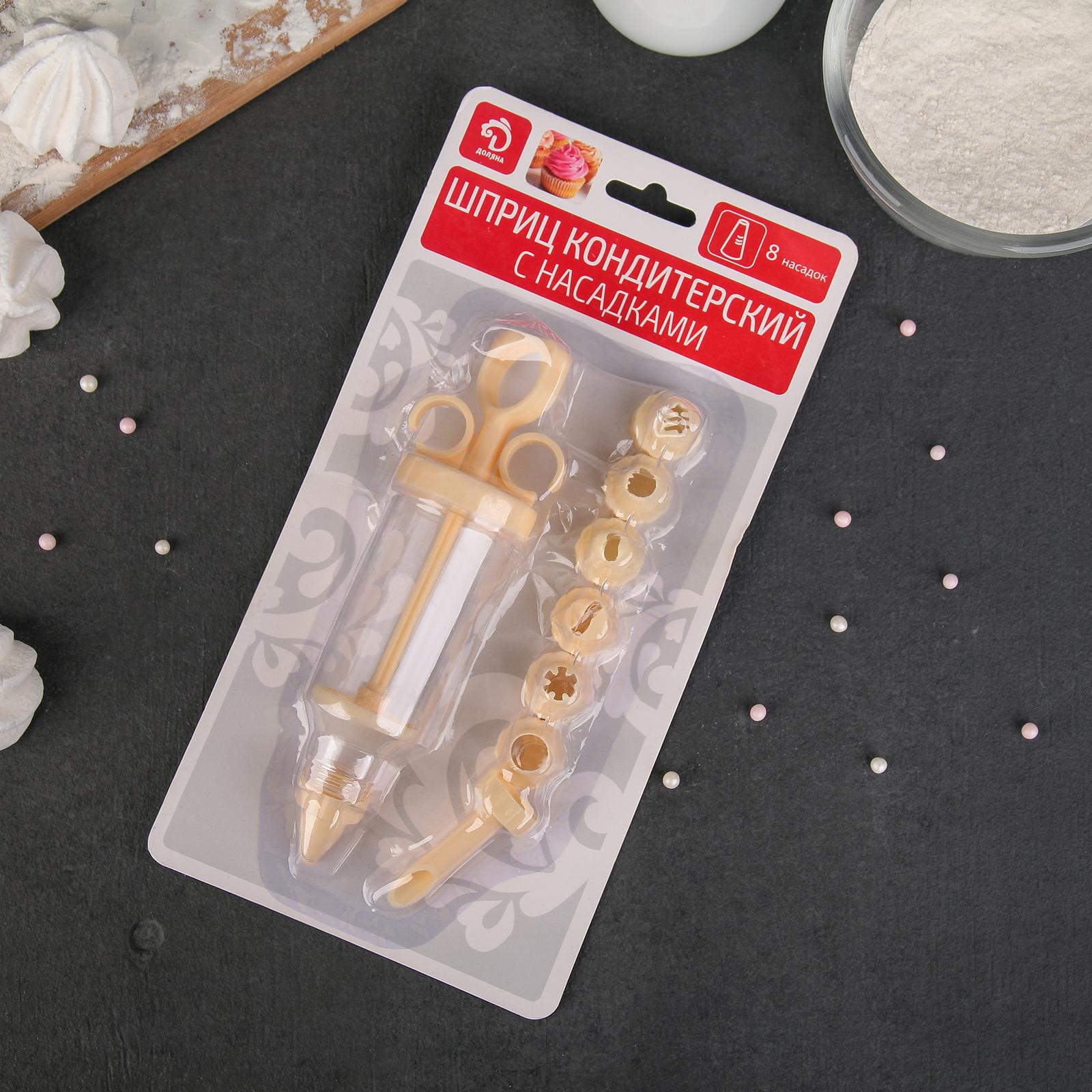 Шприц кондитерский Доляна «Cластёна», 8 насадок, 17×5×5 см, цвет МИКС