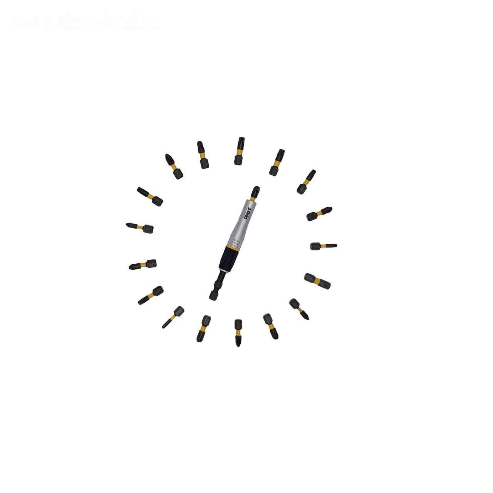 Набор бит Felo 02071946, ударных, серия Impact, с держателем бит, PZ/PH/Tx, кейс, 19 шт.