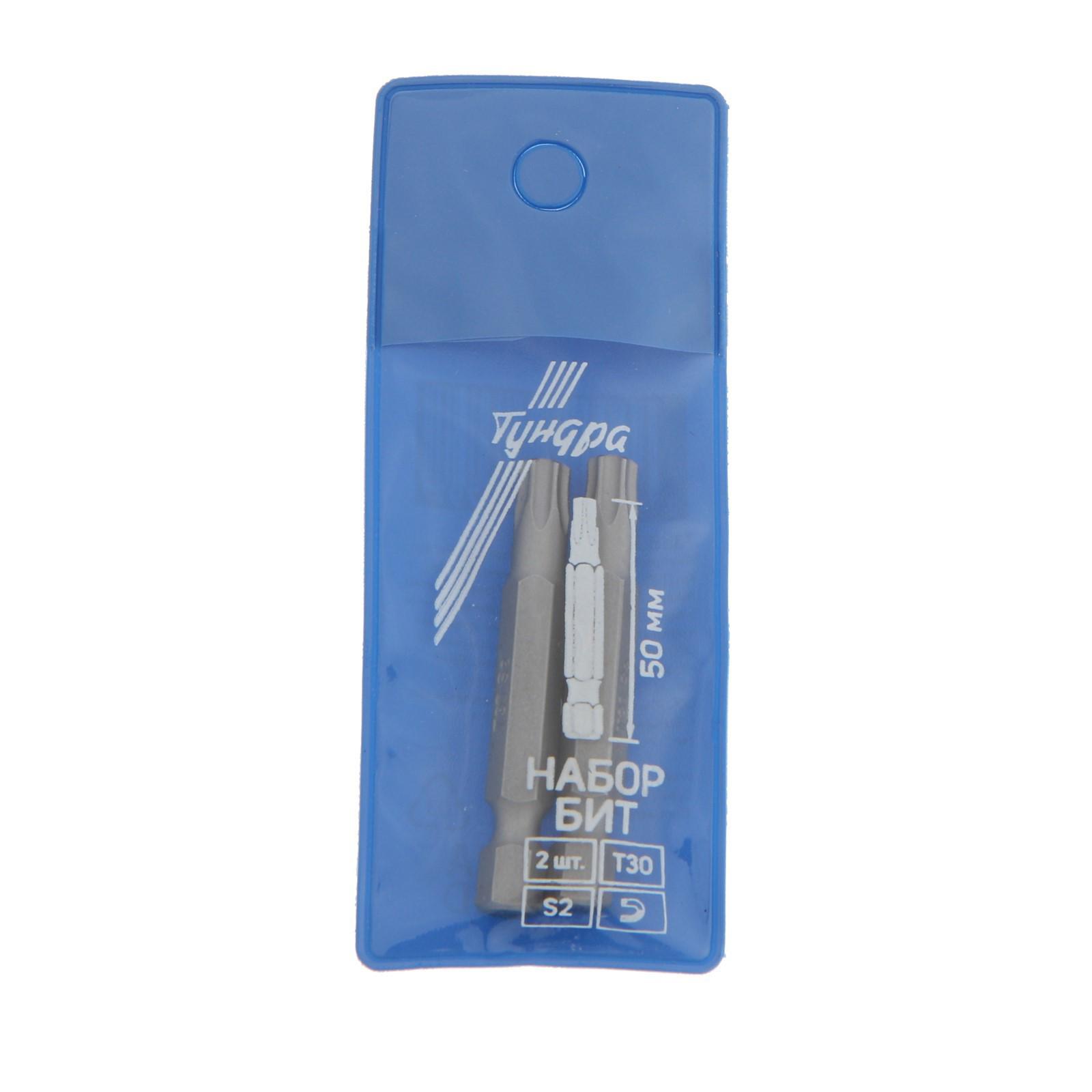 Биты ТУНДРА, намагниченные, сталь S2, T30 х 50 мм, 2 шт.