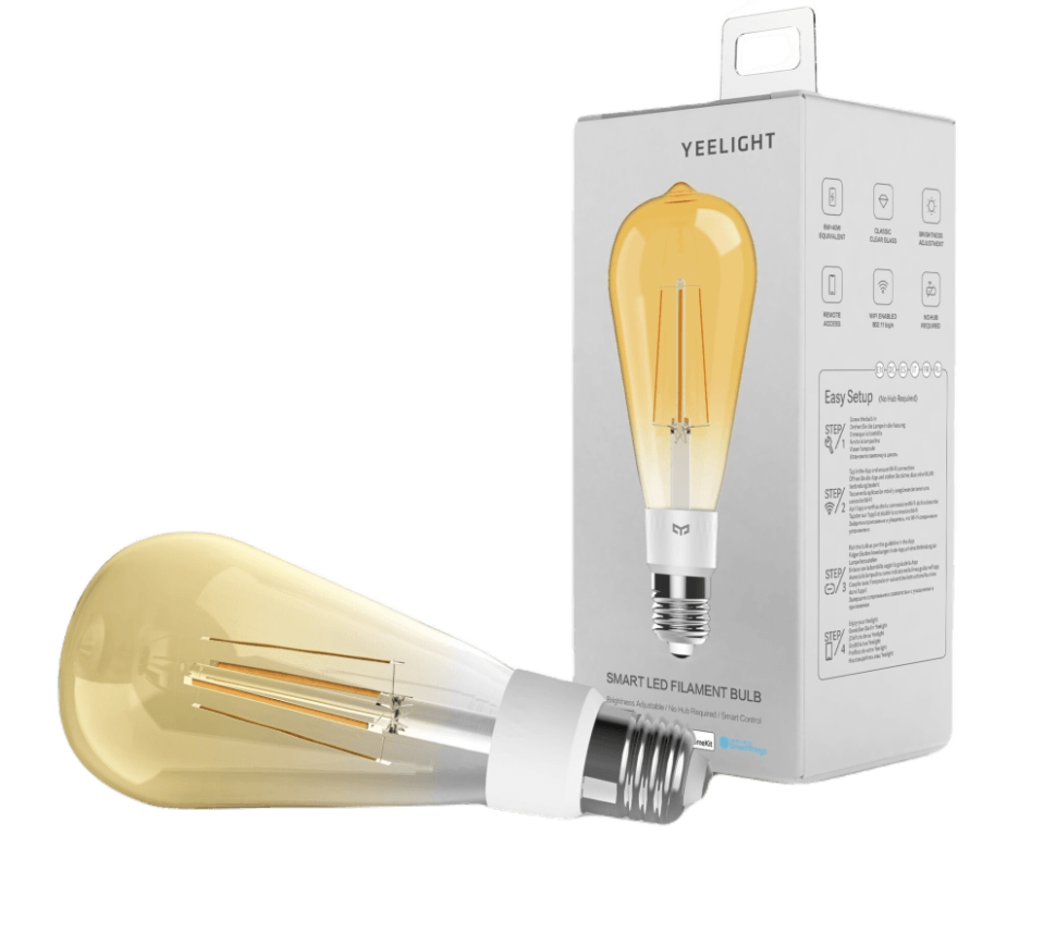 Ретро-дизайн умной лампы Yeelight Smart LED Filament Bulb ST64 вдохнолвен первой лампочкой, изобретенной Томасом Эдисоном 150 лет назад. В лампе идеально сочетаются традиционный дизайн и современные технологии. Лампа Yeelight Smart LED Filament Bulb ST64 совместима с различными системами умного дома, например, Mi Home, Apple Homekit, Samsung SmartThings. С помощью смартфона вы сможете управлять настройками лампы, например, регулировать яркость в режиме реального времени. С помощью удобных мобильных приложений Mi Home и Yeelight можно с легкостью отрегулировать яркость — от 5% до 100% и силу светового свечения лампы — до 500 лм в один клик. Лампа имеет теплую цветовую температуру — 2700 К. Приложения Yeelight и Mi Home позволяют управлять настройками лампы в любой момент и на любом расстоянии. Вы сможете включить или выключить устройство, а также настроить параметры освещения по вашему вкусу. Настройте интерактивные эффекты освещения, отрегулируйте яркость и другие свойства лампы в соответствии с вашим настроением. Используйте предустановленные режимы или создавайте свои собственные.
