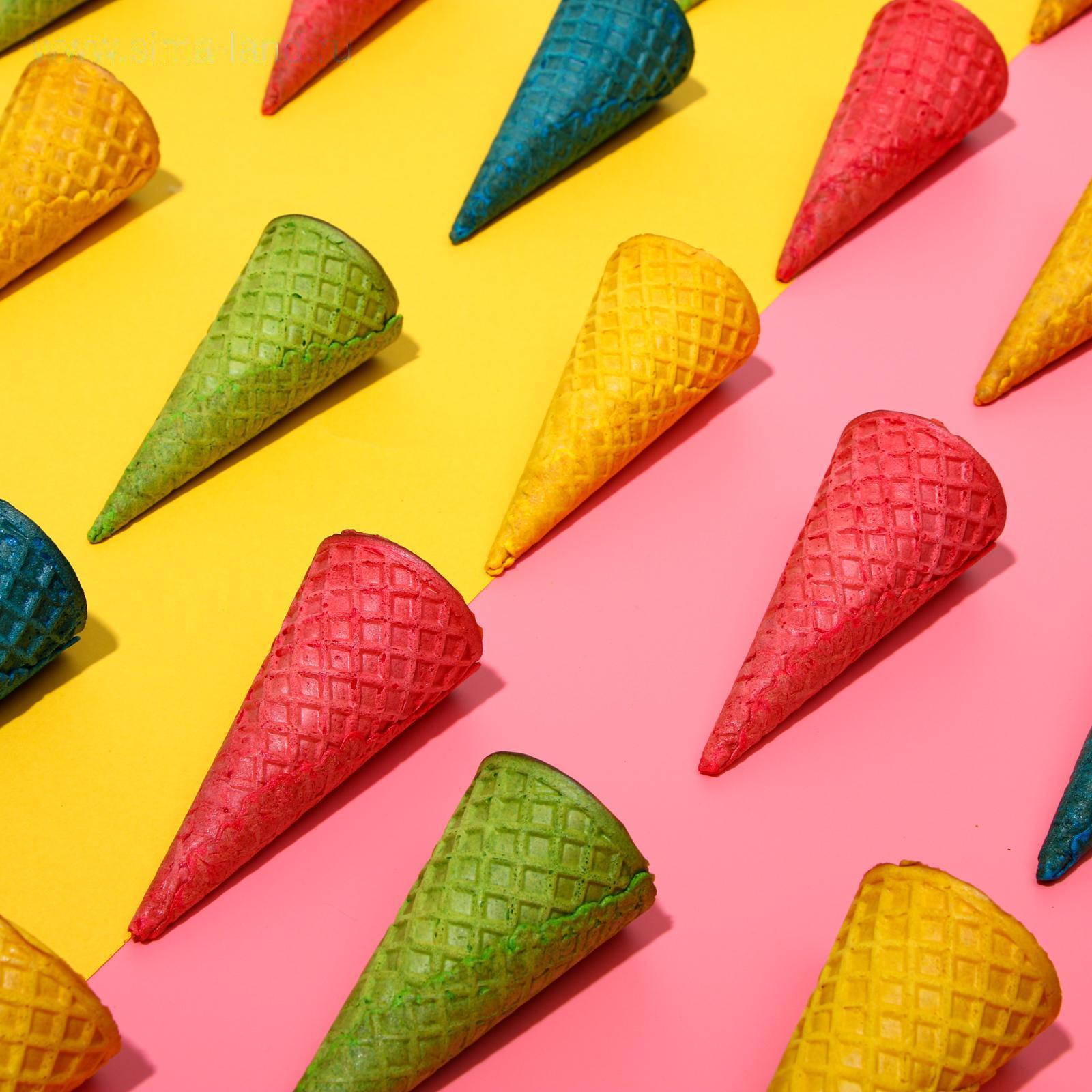 Вафельный рожок — это прекрасный вариант для подачи мягкого мороженого или украшения для ваших десертов. Натуральные красители делают рожки невероятно яркими и красивыми, к тому же они слегка отличаются по вкусу.
