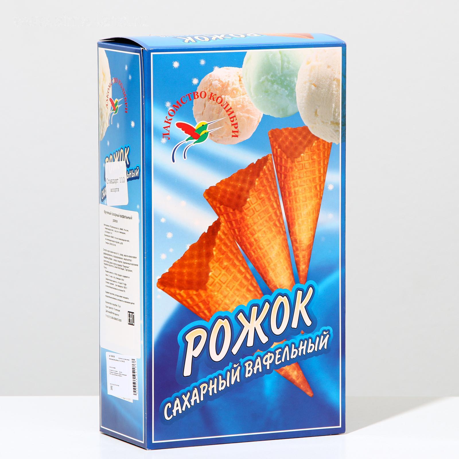 Вафельные рожки "Стандарт 110", с ровным краем, ассорти, 270 г
