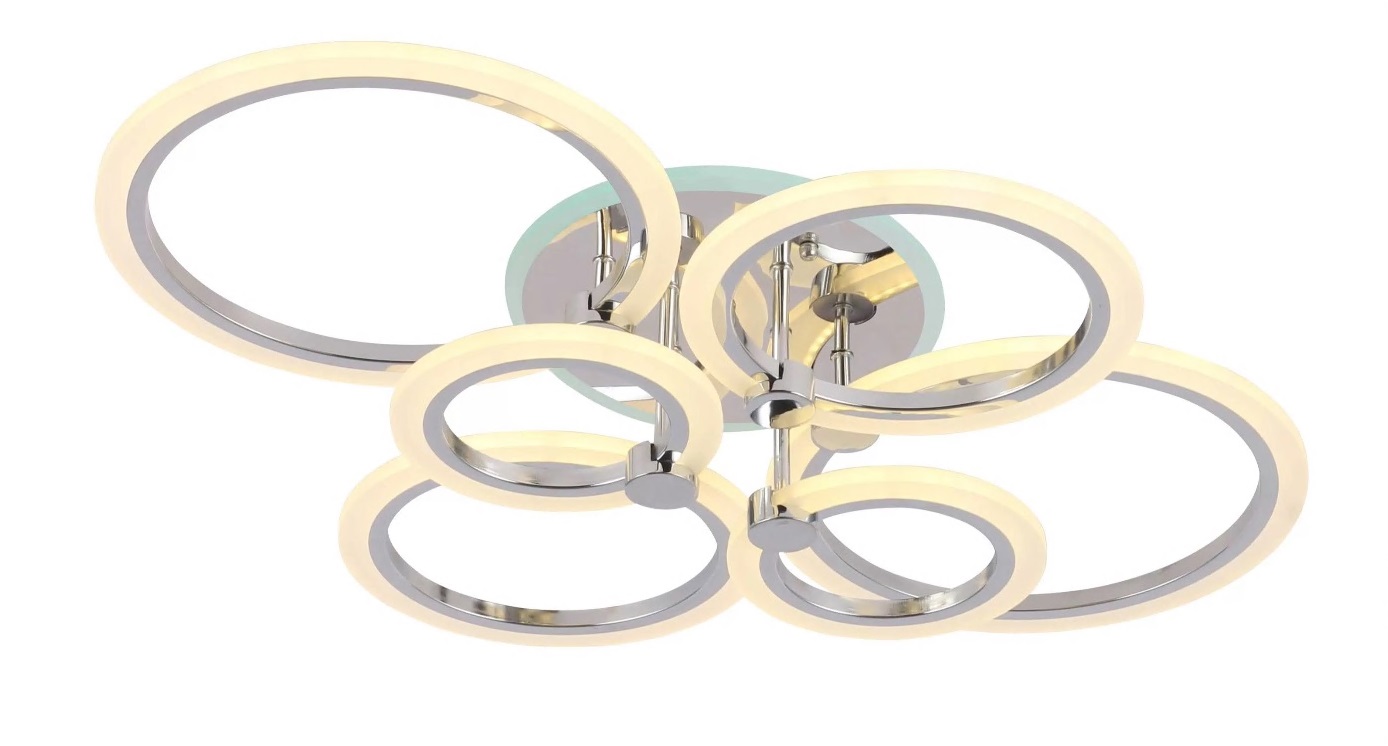 Светильник предназначен для освещения жилых помещений. Основание-металл. Декоративные элементы - пластик. Цвет - хром. Тип патрона- LED.
