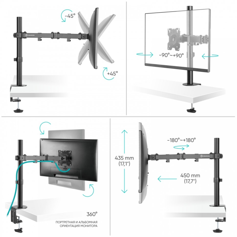 Настольный кронштейн для одного монитора 13"-34" Onkron черный (D121E)