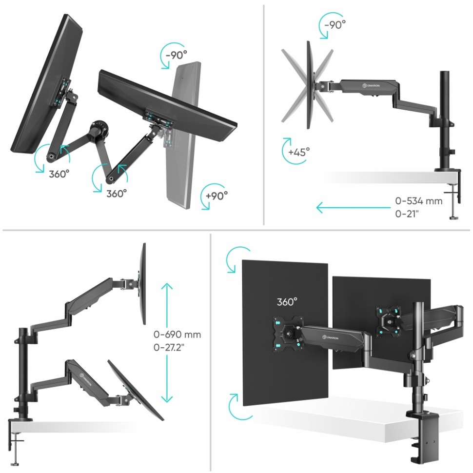 Настольный кронштейн-газлифт для двух мониторов Onkron чёрный (G140)