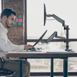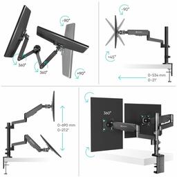 Настольный наклонно-поворотный кронштейн для двух мониторов, выполненный по технологии газлифт, ONKRON G140 подходит для мониторов и телевизоров диагональю от 13 до 32 дюймов (33 – 81,36 см) и весом до 8 кг на каждый. Механизм с возвратной пружиной и газовым амортизатором, располагающийся внутри корпуса кронштейна, даст возможность легко перемещать монитор в любую нужную вам позицию. Производитель предусмотрел два способа крепления кронштейна. Надежная струбцина позволяет крепить кронштейн на край стола. В комплекте также поставляется механизм, позволяющий крепить кронштейн через отверстие в столешнице. Кронштейн ONKRON G140 поможет вам оптимально организовать пространство и освободить место для документов и офисного оборудования на компьютерном столе. Это стильное настольное крепле станет хорошим решением для вашего дома или офиса. Сложный технический процесс изготовления газовой пружины, качественные клапаны и износостойкая сталь цилиндра пружины в совокупности обеспечивают максимизацию преимуществ и удобств для пользователя, а именно: - плавную регулировку положения монитора без рывков и отскоков, - устойчивость в установленном положении независимо от веса монитора, - значительный ресурс газовой пружины, рассчитанный минимум на 50.000 нагрузочных циклов.