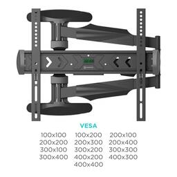 Новое настенное крепление для телевизора от ONKRON, наклонно-поворотный кронштейн NP47 – это сочетание ультратонкого дизайна с впечатляющим вылетом от стены. Крепление подходит для большинства современных телевизоров популярных брендов, среди которых Samsung, LG, Sony, KIVI, Tcl, Xiaomi Mi, SUPRA, Panasonic, Hyundai, Erisson, Asano, Horizont, JVC, Thomson, HARTENS, Sharp, Toshiba, Skyworth, BBK, AVEL, Витязь, Веко, BQ, DEXP, SkyLine, Pioneer, Rolsen, Harper, Hisense, Hitachi, Polarline, Prestigio, Telefunken и других. Кронштейн предназначен для панелей широкой диагональю – от 40 до 75 дюймов (101,6-190,5 см). Высококачественная стальная конструкция обеспечит полную безопасность телевизорам весом до 35 кг. Тонкий профиль – в сложенном состоянии ширина кронштейна составляет всего 6,3 см – делает кронштейн незаметным за Вашей ТВ-панелью. Пристенная площадка обеспечит простое и надежное крепление кронштейна к бетонной или деревянной поверхности с помощью прилагаемого набора для монтажа. Изделие выполнено из холоднокатаной стали с матовым порошковым покрытием, что обеспечивает не только его прочность и долговечность, но и премиальный внешний вид. * Информация о диагоналях телевизора носит рекомендательный характер. При выборе кронштейна необходимо ориентироваться на поддерживаемые размеры VESA и на вес телевизора. Кронштейн подходит для большинства телевизоров популярных брендов, среди которых Samsung, LG, Sony, KIVI, Tcl, Xiaomi Mi, SUPRA, Panasonic, Hyundai, Erisson, Asano, Horizont, JVC, Thomson, HARTENS, Sharp, Toshiba, Skyworth, BBK, AVEL, Витязь, Веко, BQ, DEXP, SkyLine, Pioneer, Rolsen, Harper, Hisense, Hitachi, Polarline, Prestigio, Telefunken и других.