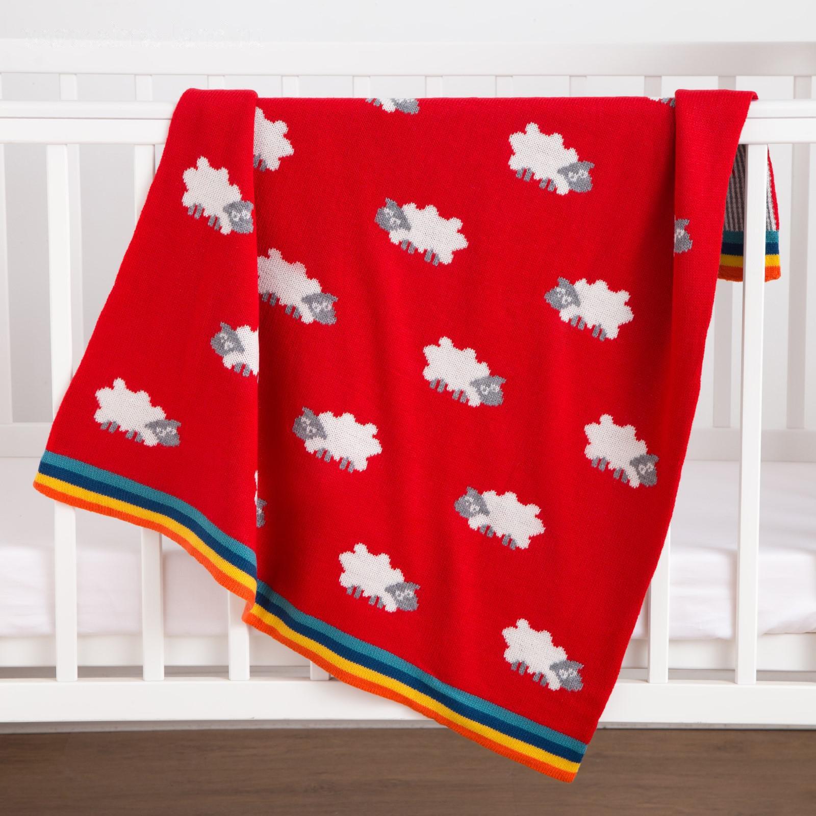 Плед вязаный Крошка Я "Овечки" цв. красный, 80*100 см, 100% хлопок
