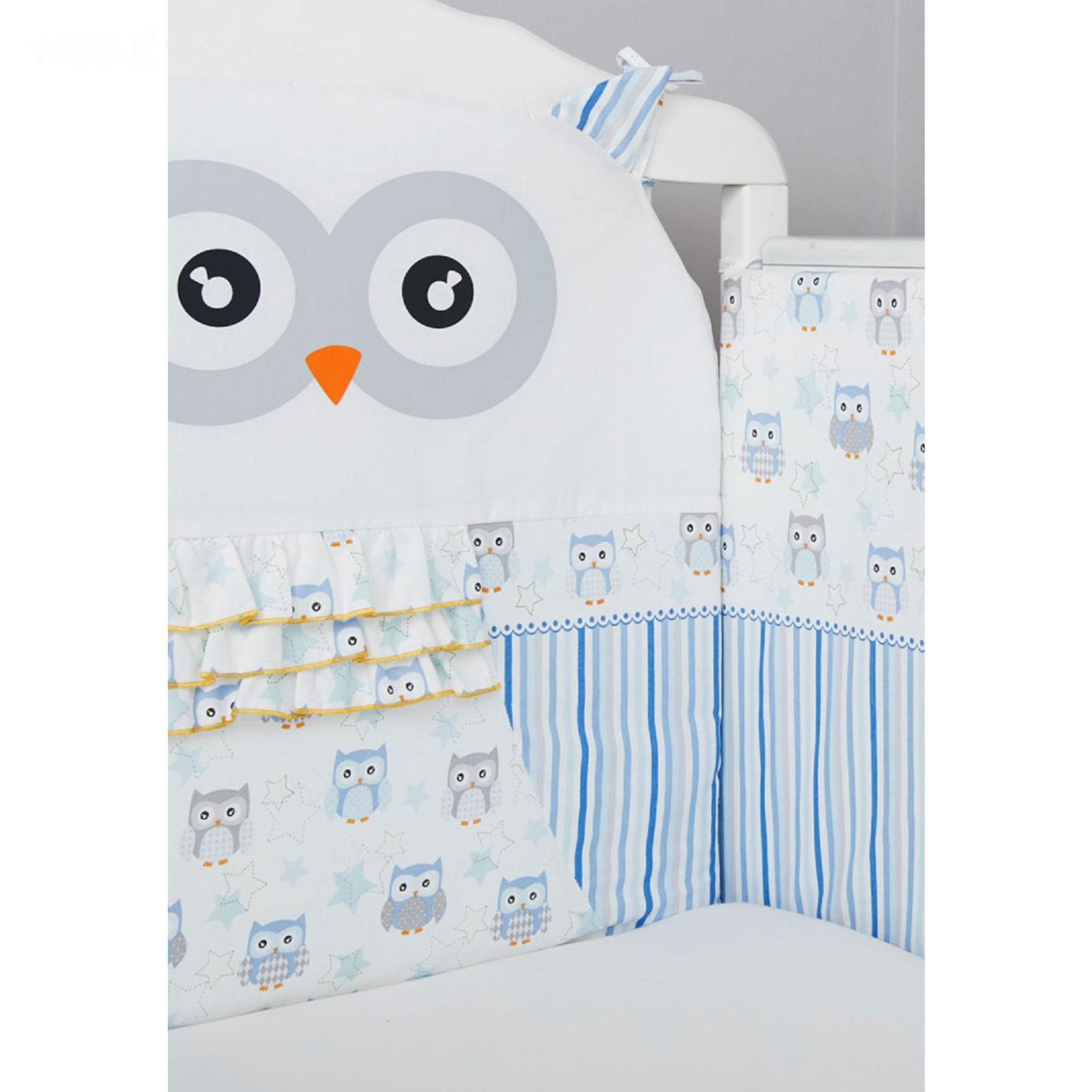 Борт в кроватку «Совушки», размер 360 × 44 см, цвет голубой