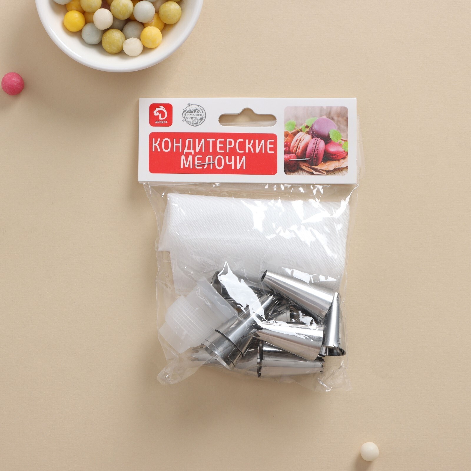 Набор кондитерский Доляна, 11 предметов: мешок, 10 насадок, цвет МИКС