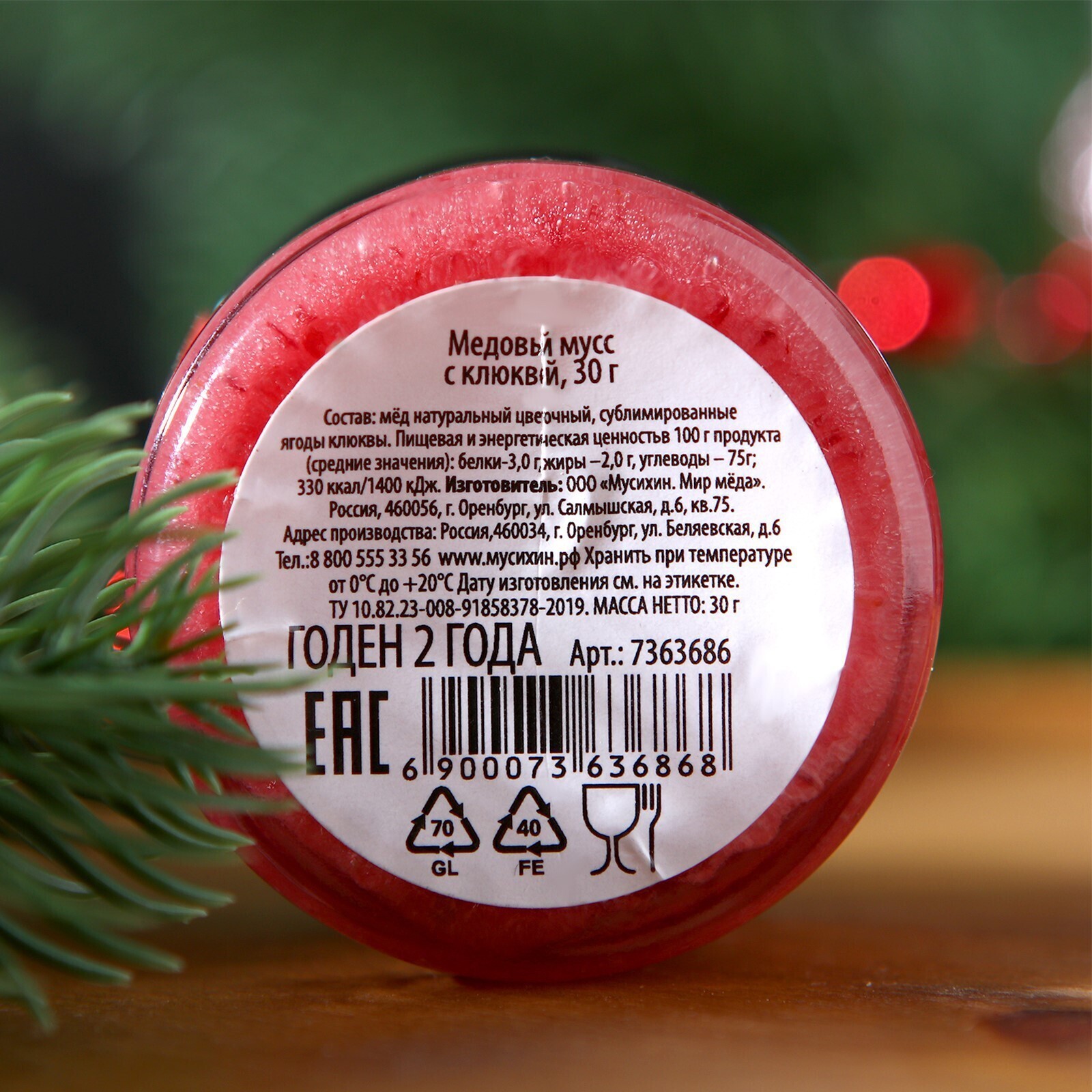 Медовый мусс «С Новым Годом», с клюквой, 30 г
