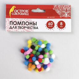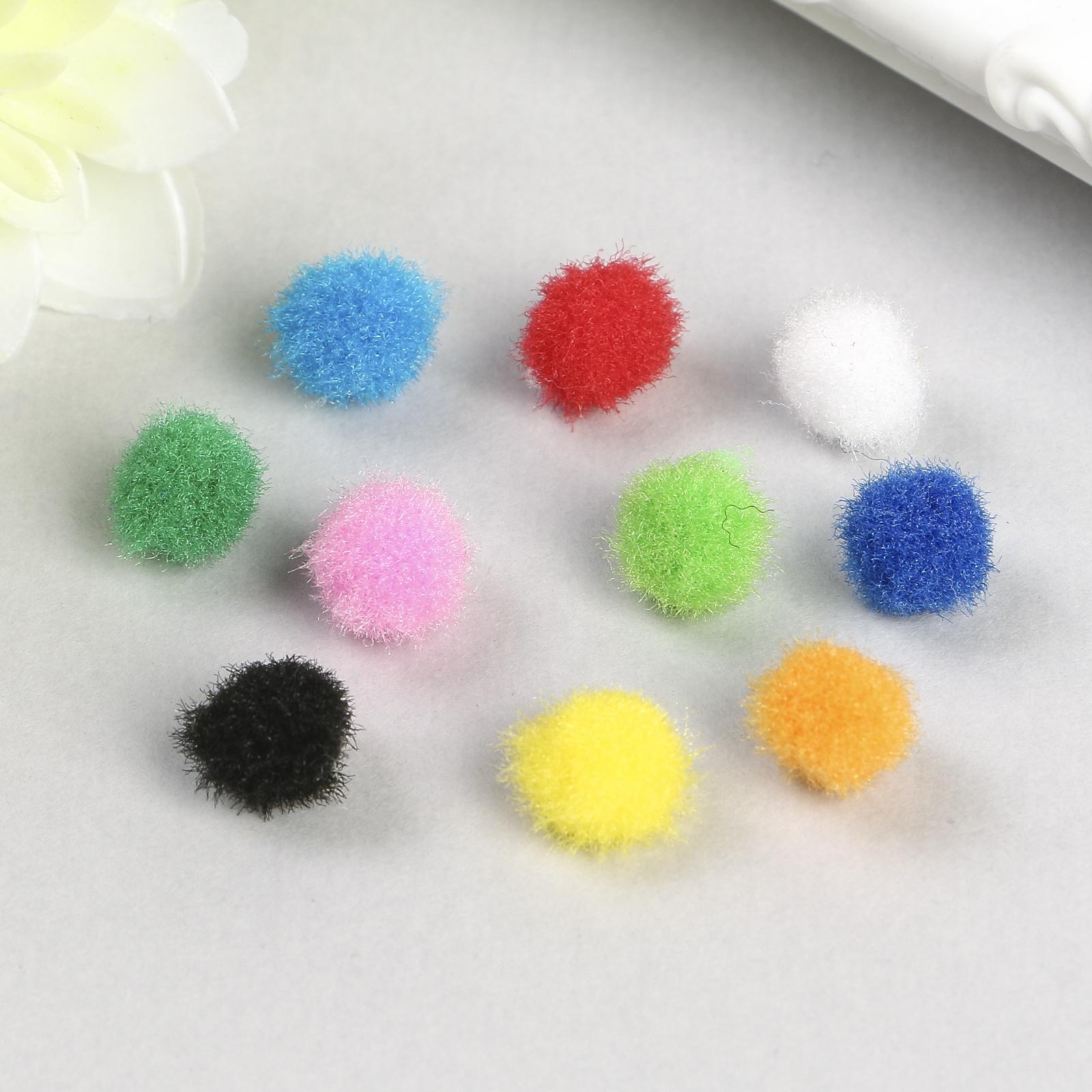 Помпоны для творчества, 10 цветов, 8 мм, (набор 60 шт)