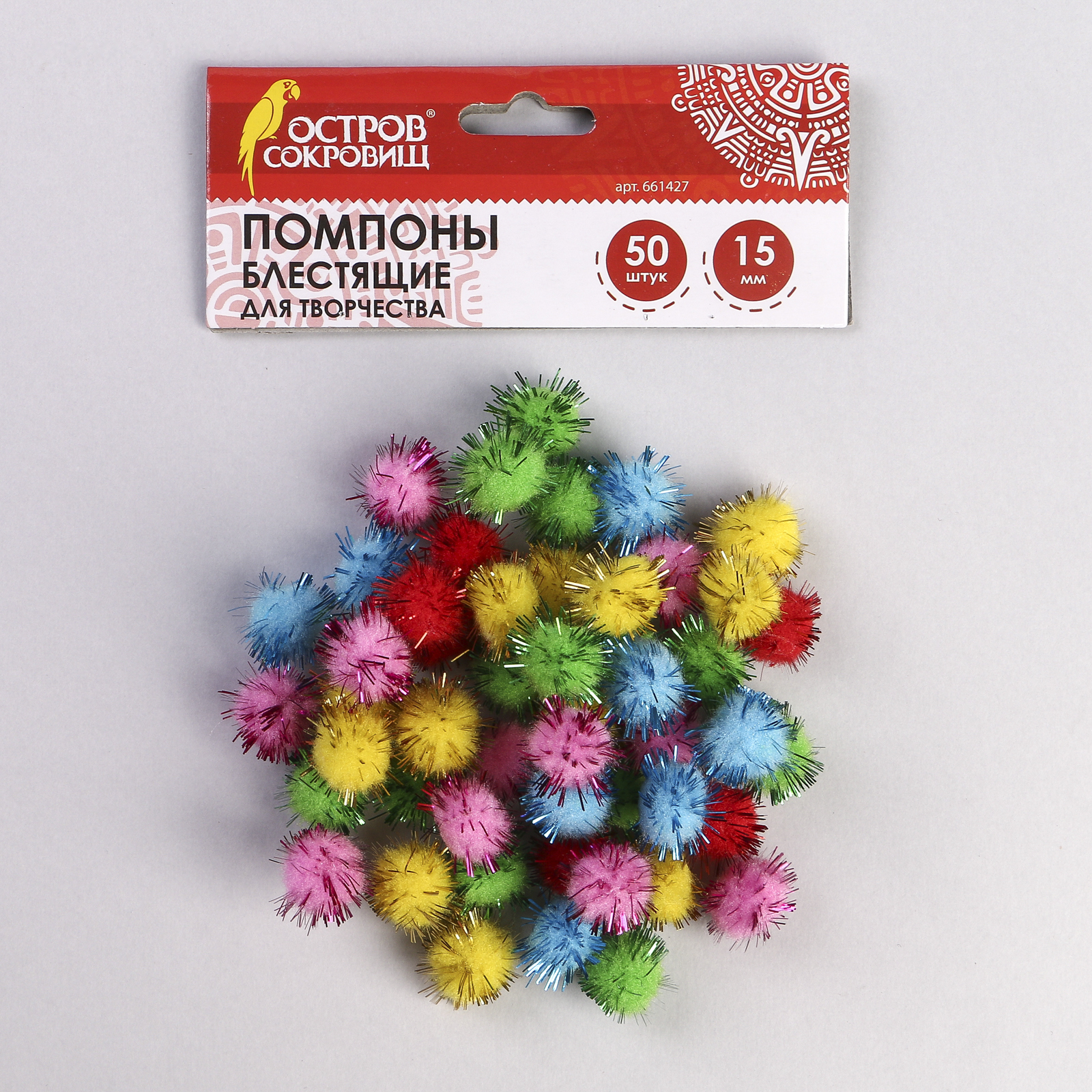 Помпоны для творчества, блестящие, 5 цветов, 15 мм, (набор 50 шт)