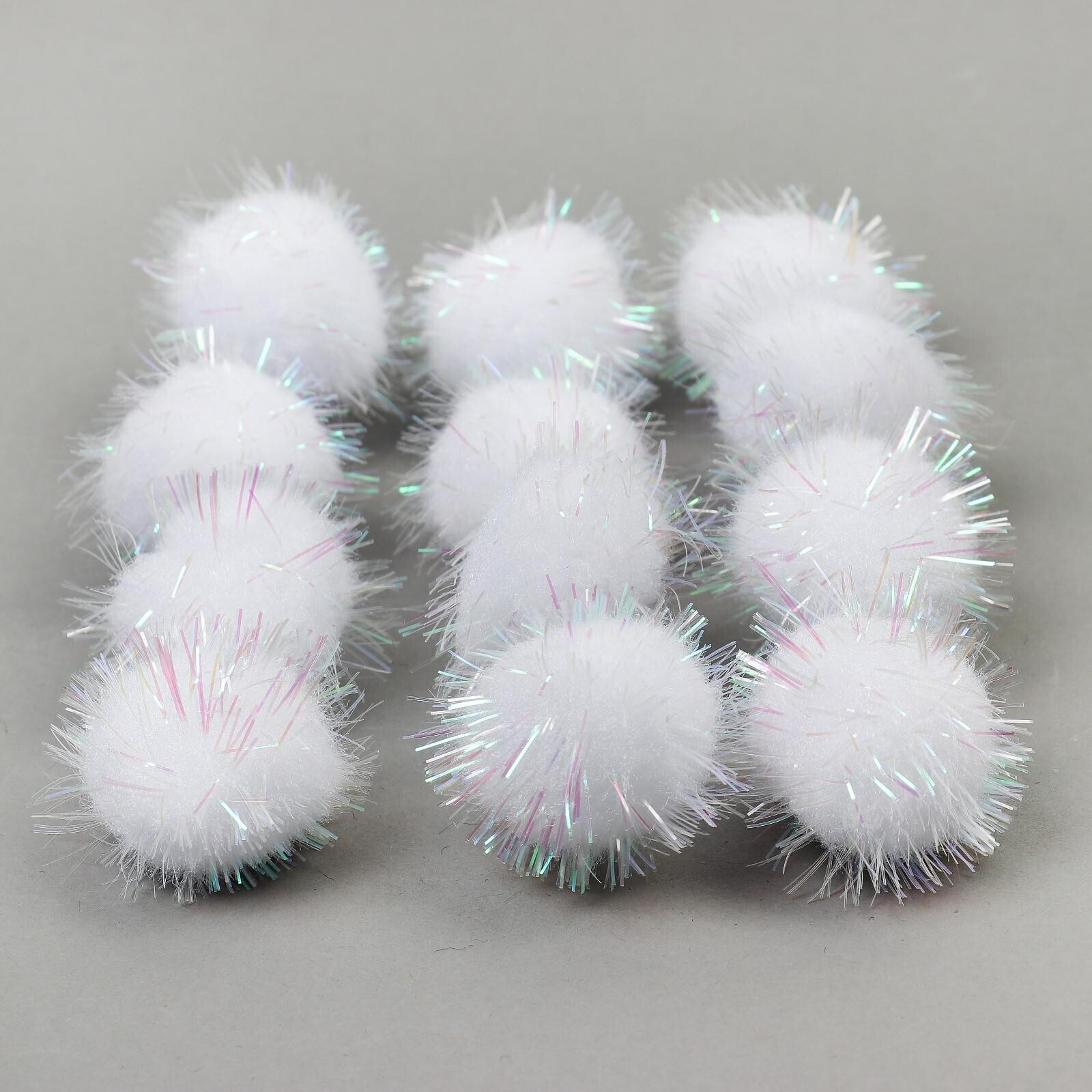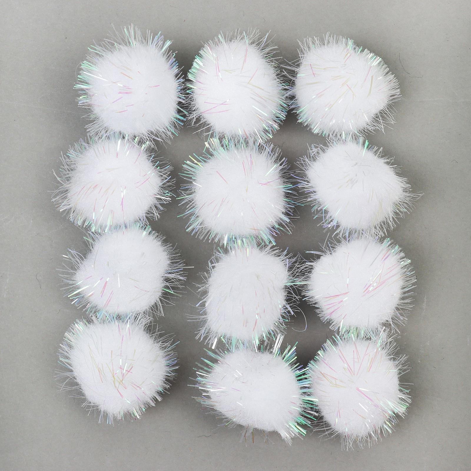 Набор деталей для декора "Бомбошки с блеском" набор 12 шт., размер 1 шт: 3 см, цвет белый перламутр