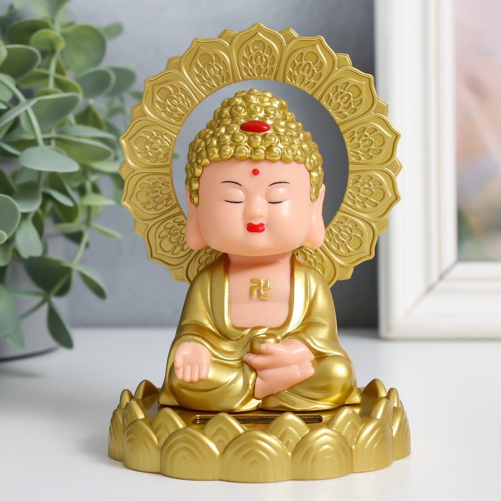 Маятник пластик от солнечной батареи "Будда в золотом" 12х8,5х8,5 см