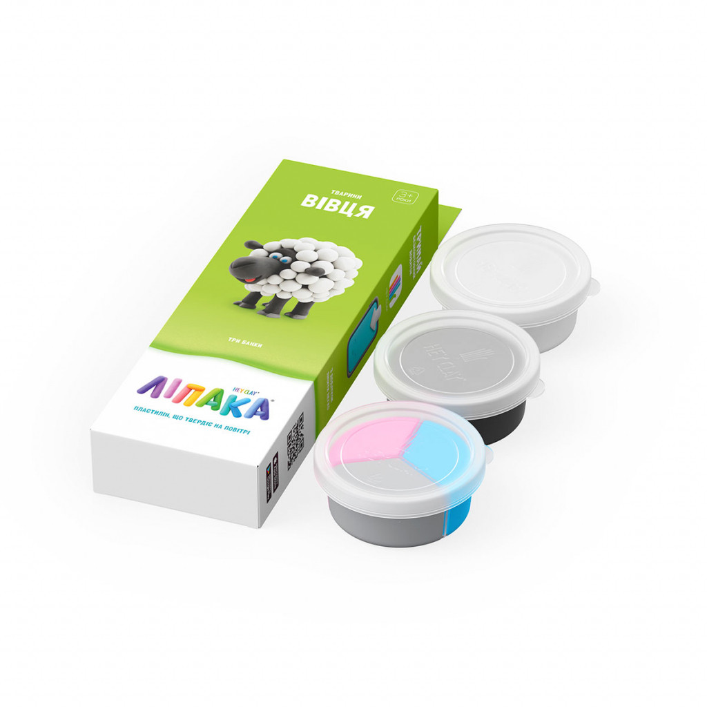 Набір пластиліну, що самостійно твердіє, ЛІПАКА – ВІВЦЯ – розважить і малюків і дорослих. За допомогою анімаційних інструкцій в додатку HEY CLAY, Ви зможете зліпити кумедну вівцю. А завдяки компактним розмірам, набір зручно брати з собою. Пластилін твердіє на повітрі протягом 24 годин, після чого можна гратися створеними фігурками.