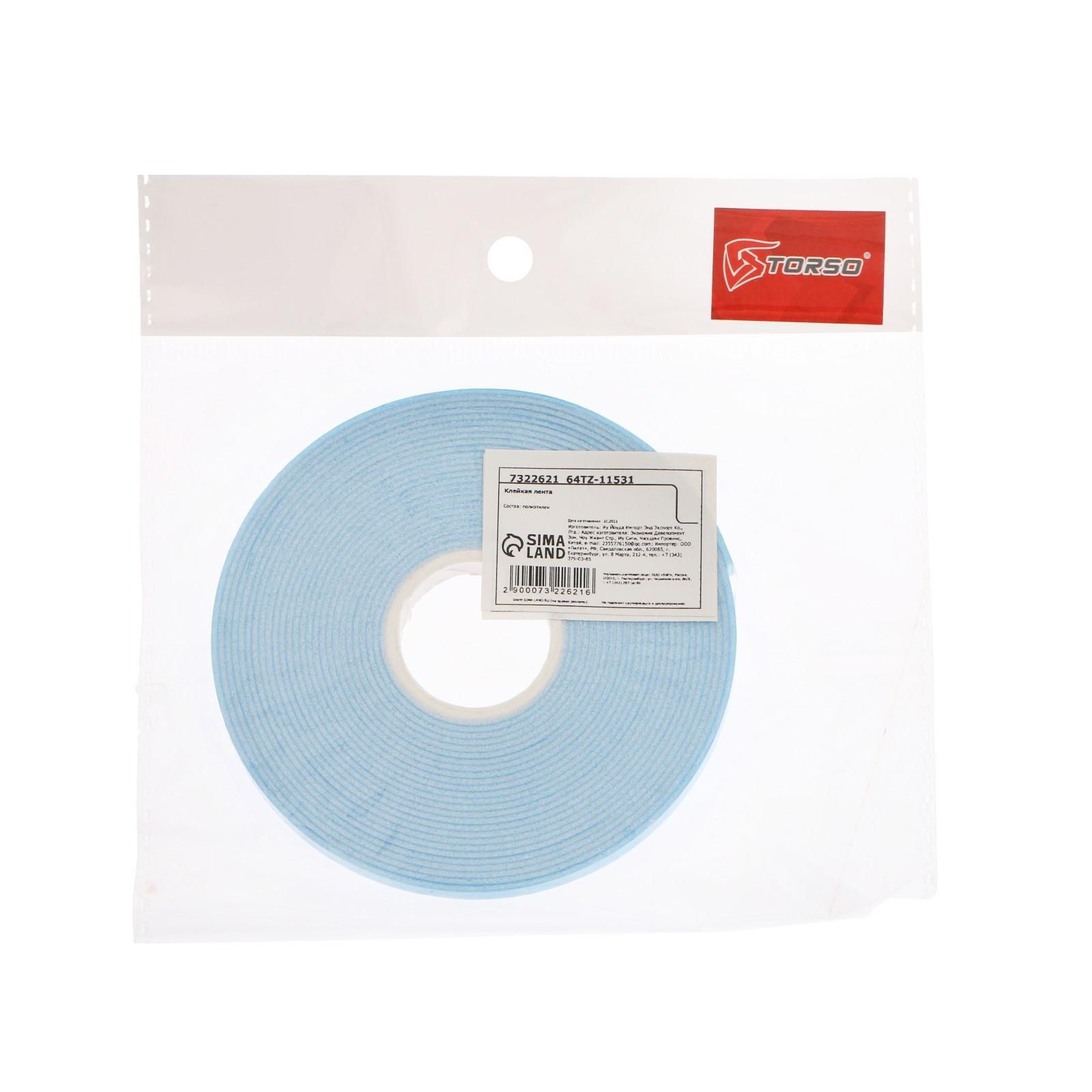 Клейкая лента TORSO, двусторонняя, вспененная, синий защитный слой, 6 мм x 5 м