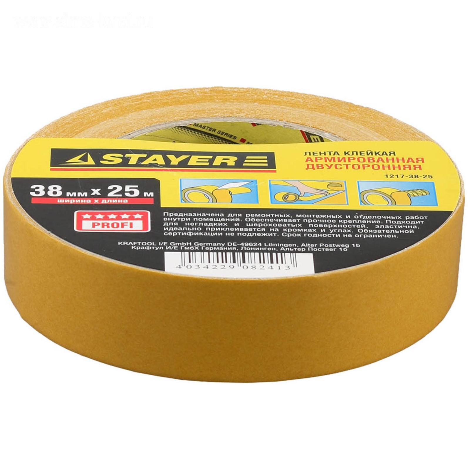 Лента клейкая STAYER Profi 1217-38-25, двухсторонняя, на тканевой основе, 38мм х 25м