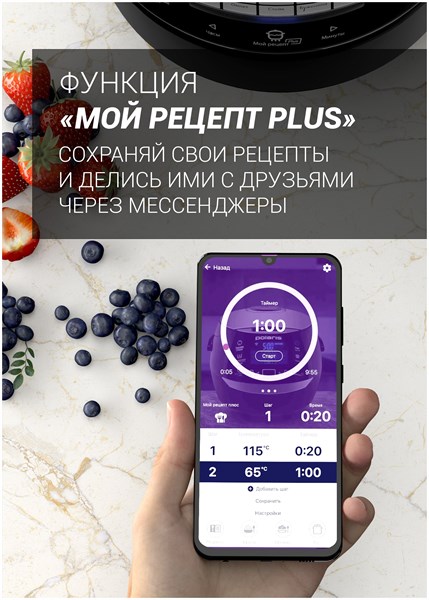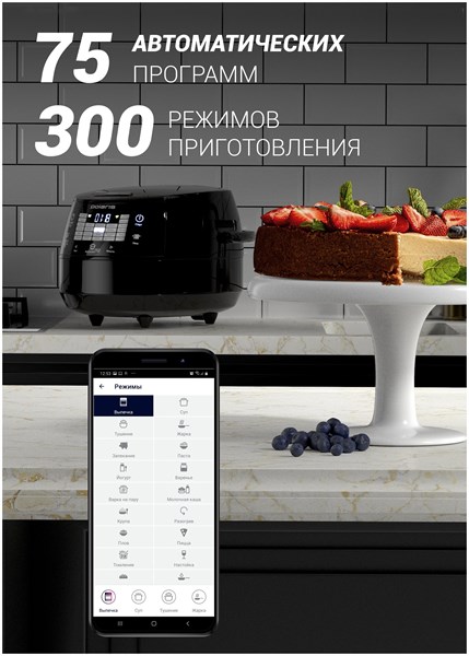 • Программы мультиповар, выпечка, паста, варенье, молочная каша, жарка, приготовление на пару, суп, йогурт, плов, крупа, тушение, мясо, пицца